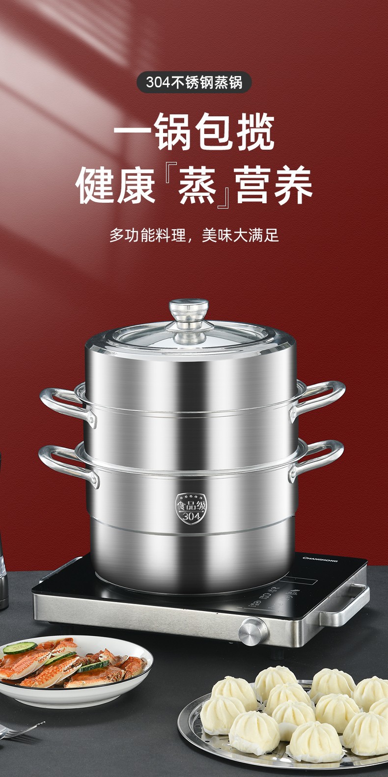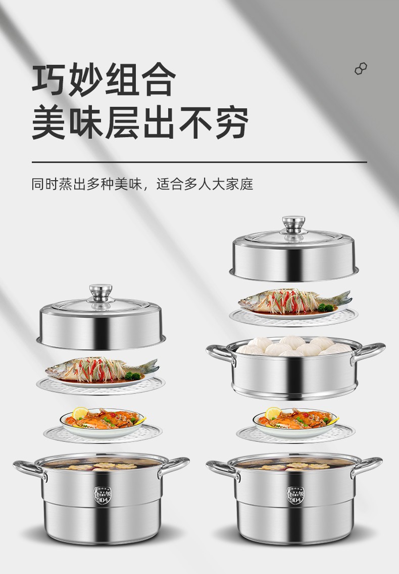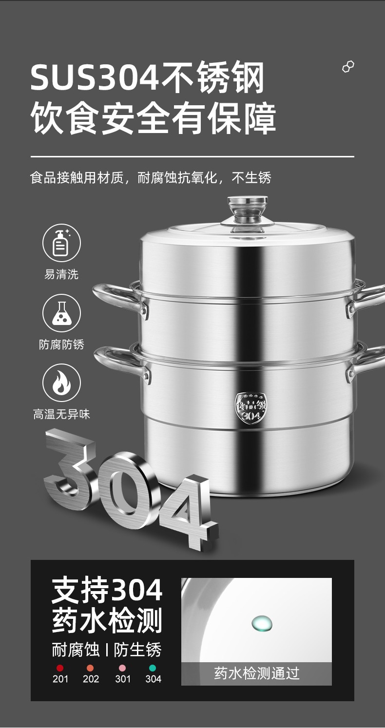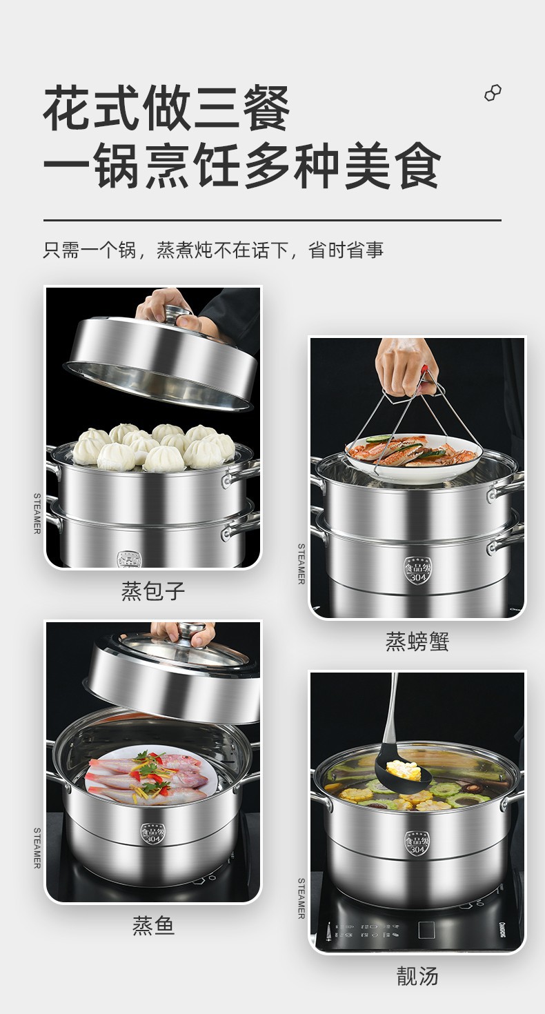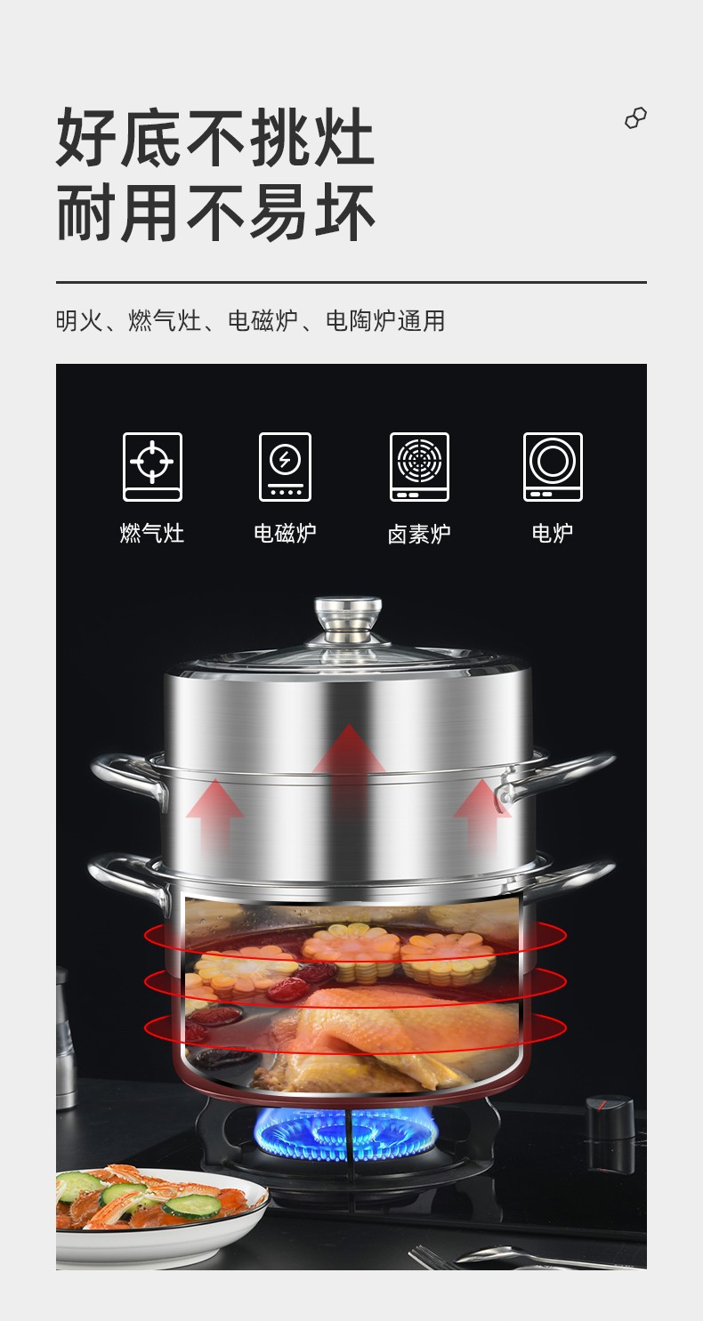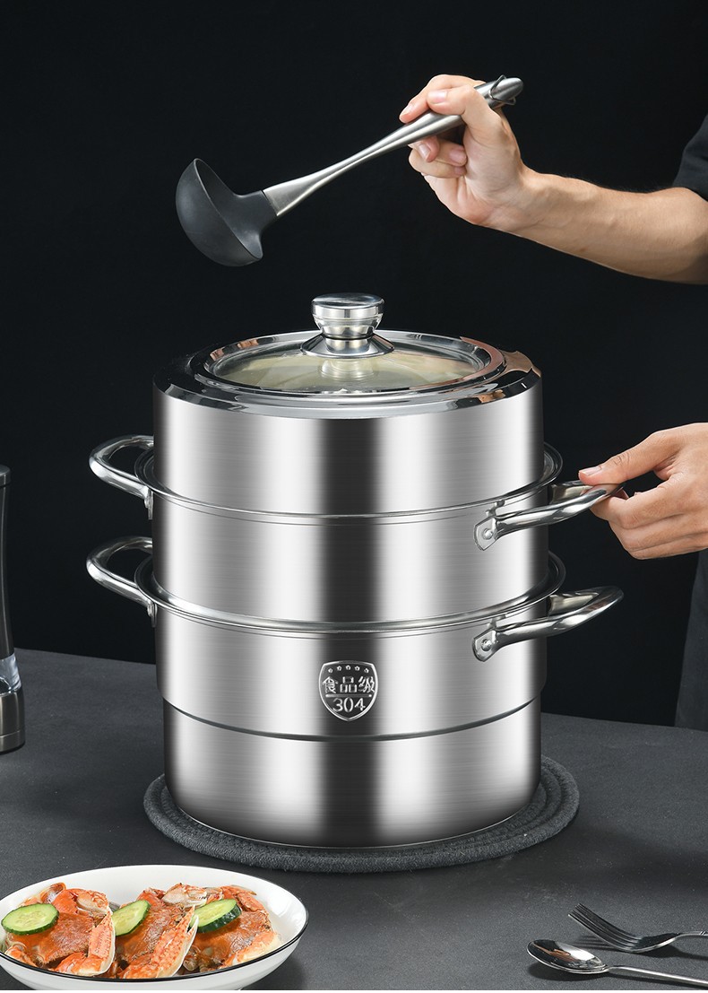 加厚304不鏽鋼三層蒸鍋家用蒸格蒸籠屜商用電磁爐瓦斯燉煮燜湯鍋