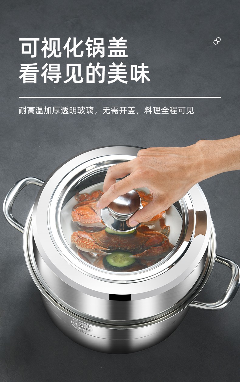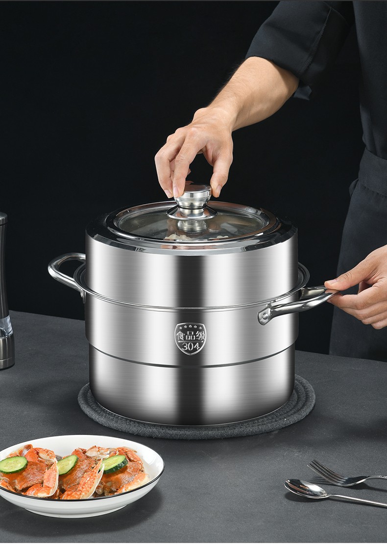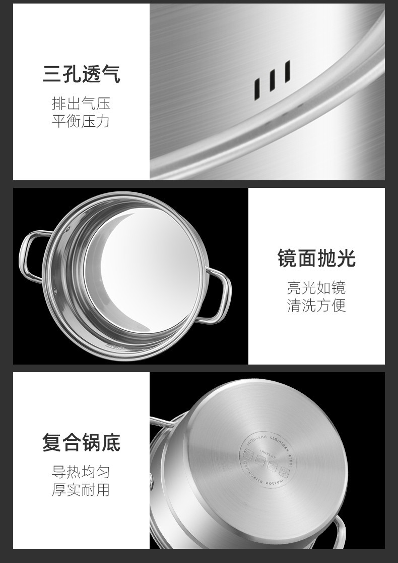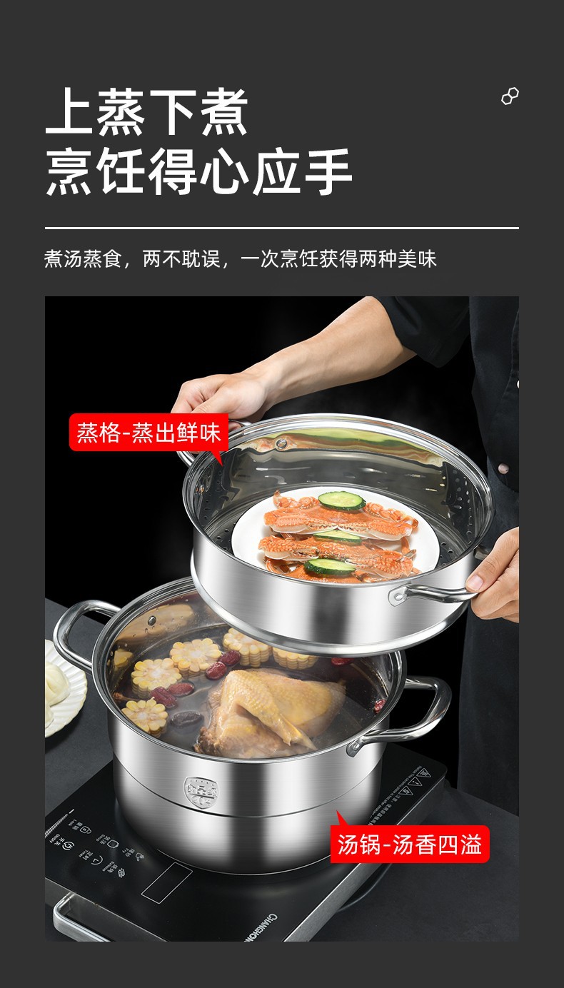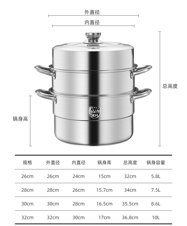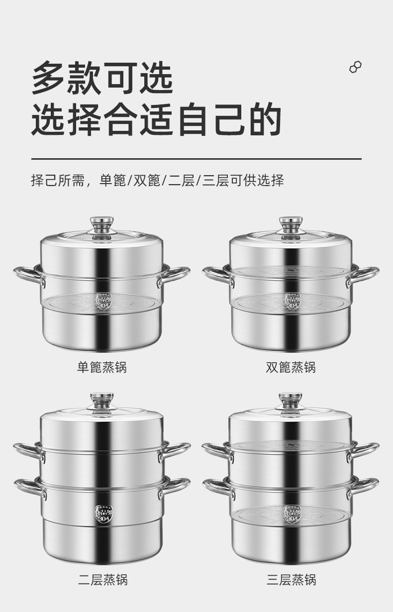 加厚304不鏽鋼三層蒸鍋家用蒸格蒸籠屜商用電磁爐瓦斯燉煮燜湯鍋