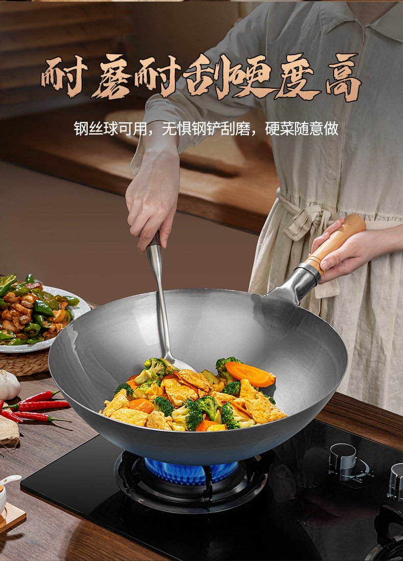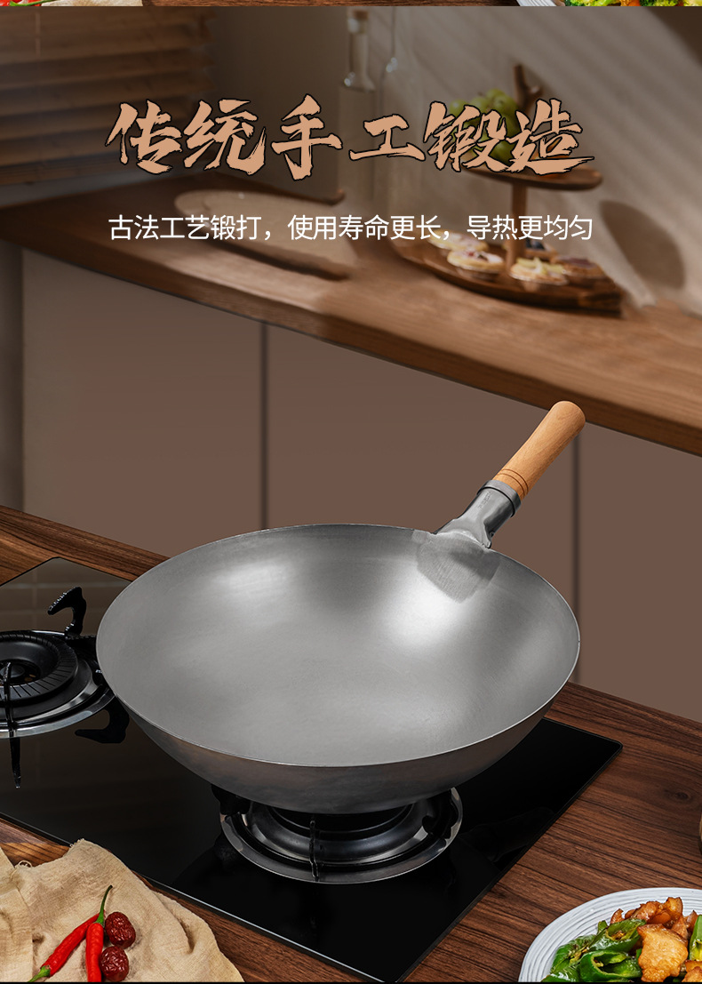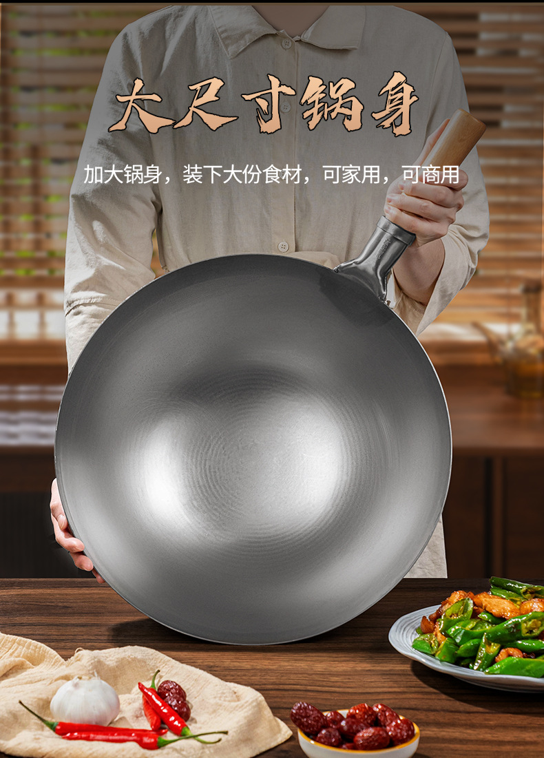 連體商用鐵鍋飯店大肚炒鍋炒菜鍋老式無塗層戶外熟鐵不易粘鍋