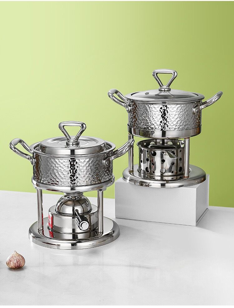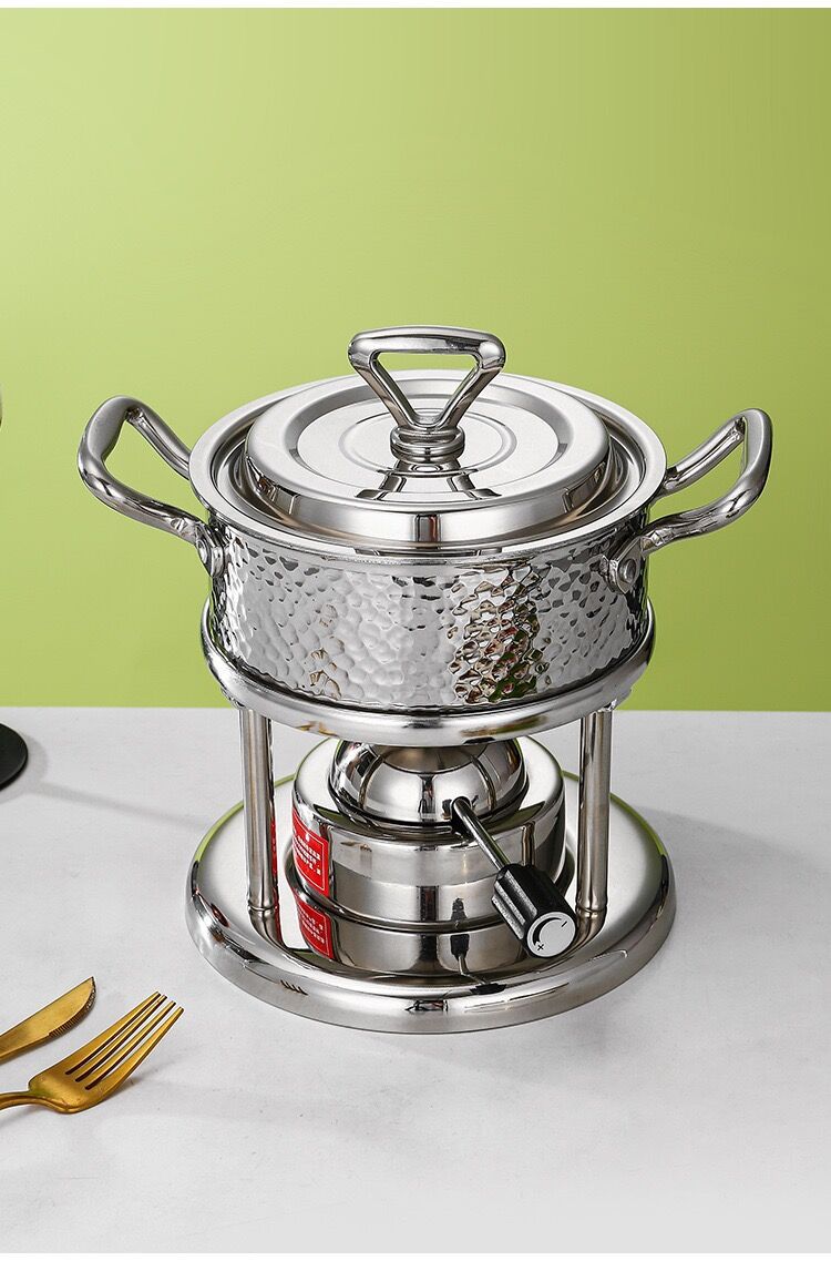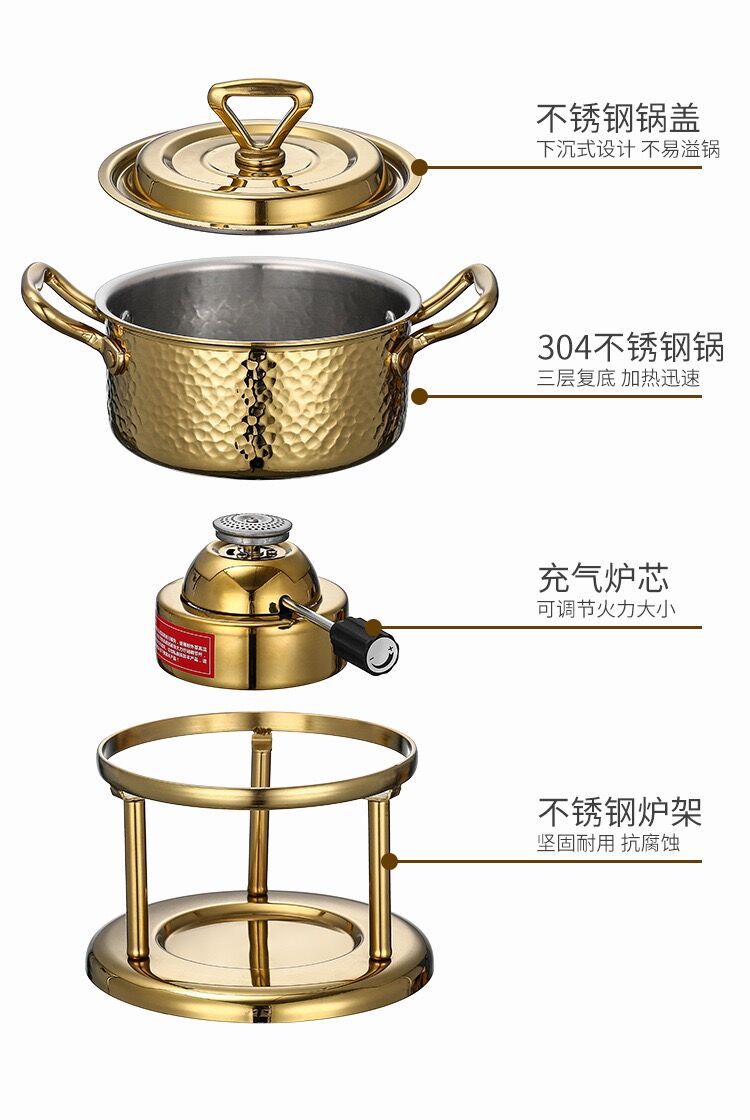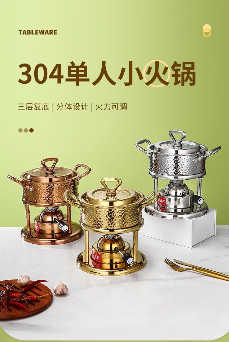 304不鏽鋼一人一鍋自助涮鍋三層鋼環保油充氣式瓦斯爐單人小火鍋