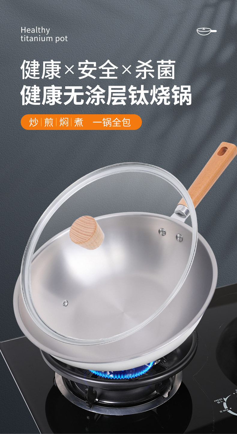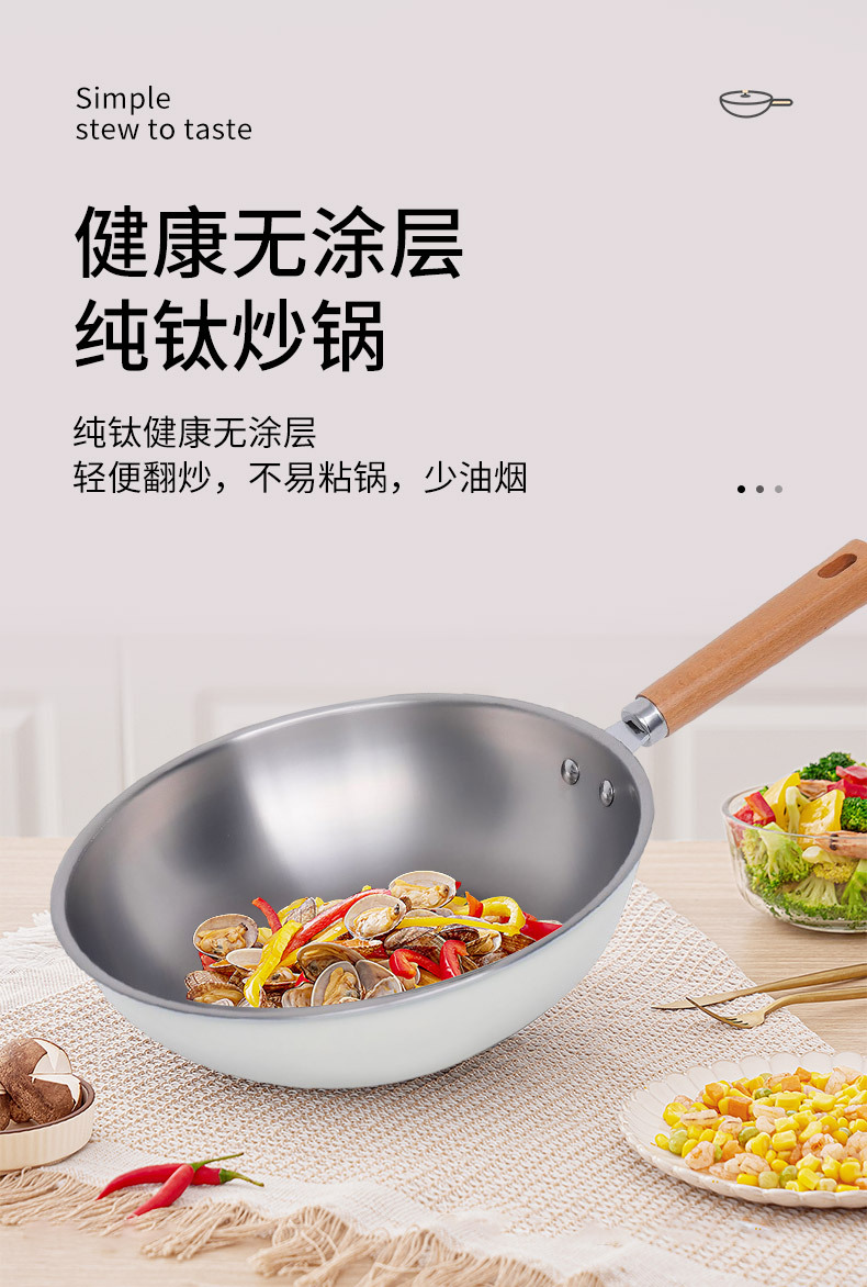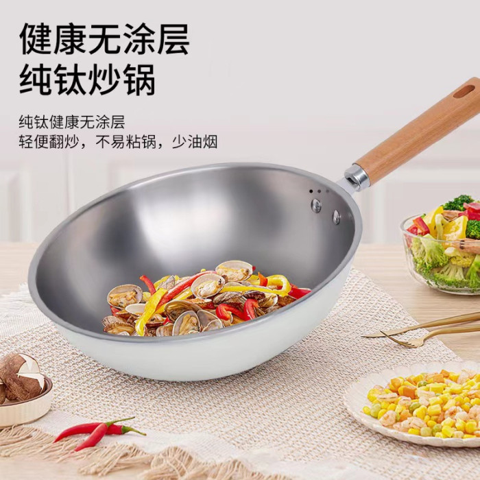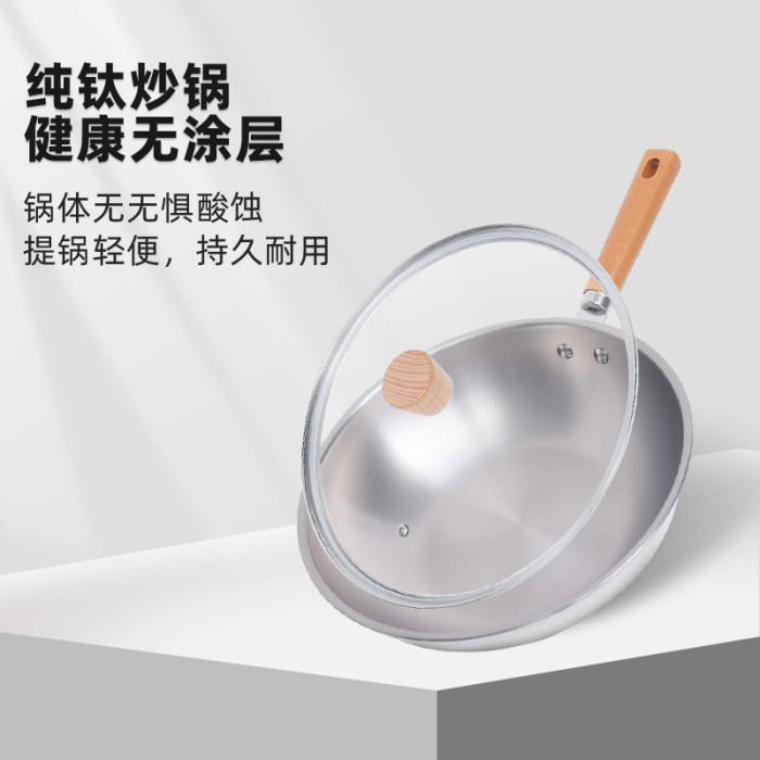 嚴選新款超輕鈦鍋純鈦炒鍋家用無塗層平底鍋炒菜鍋不沾電磁爐通用