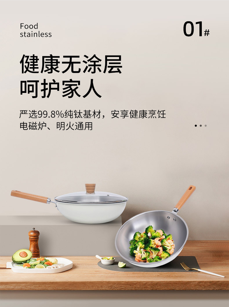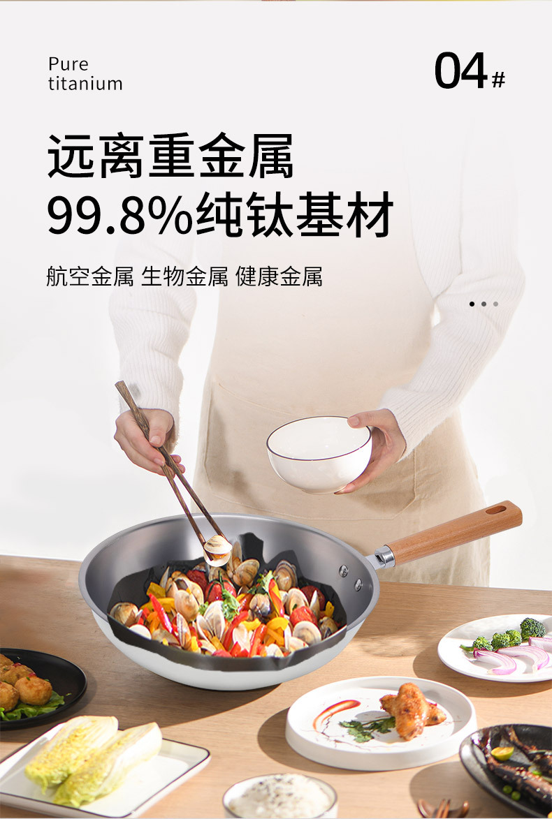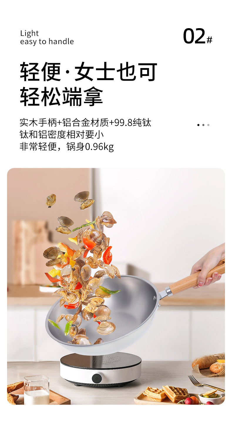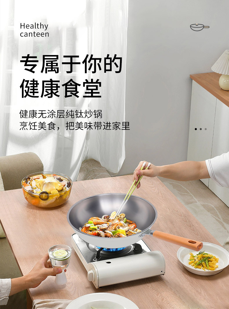 嚴選新款超輕鈦鍋純鈦炒鍋家用無塗層平底鍋炒菜鍋不沾電磁爐通用