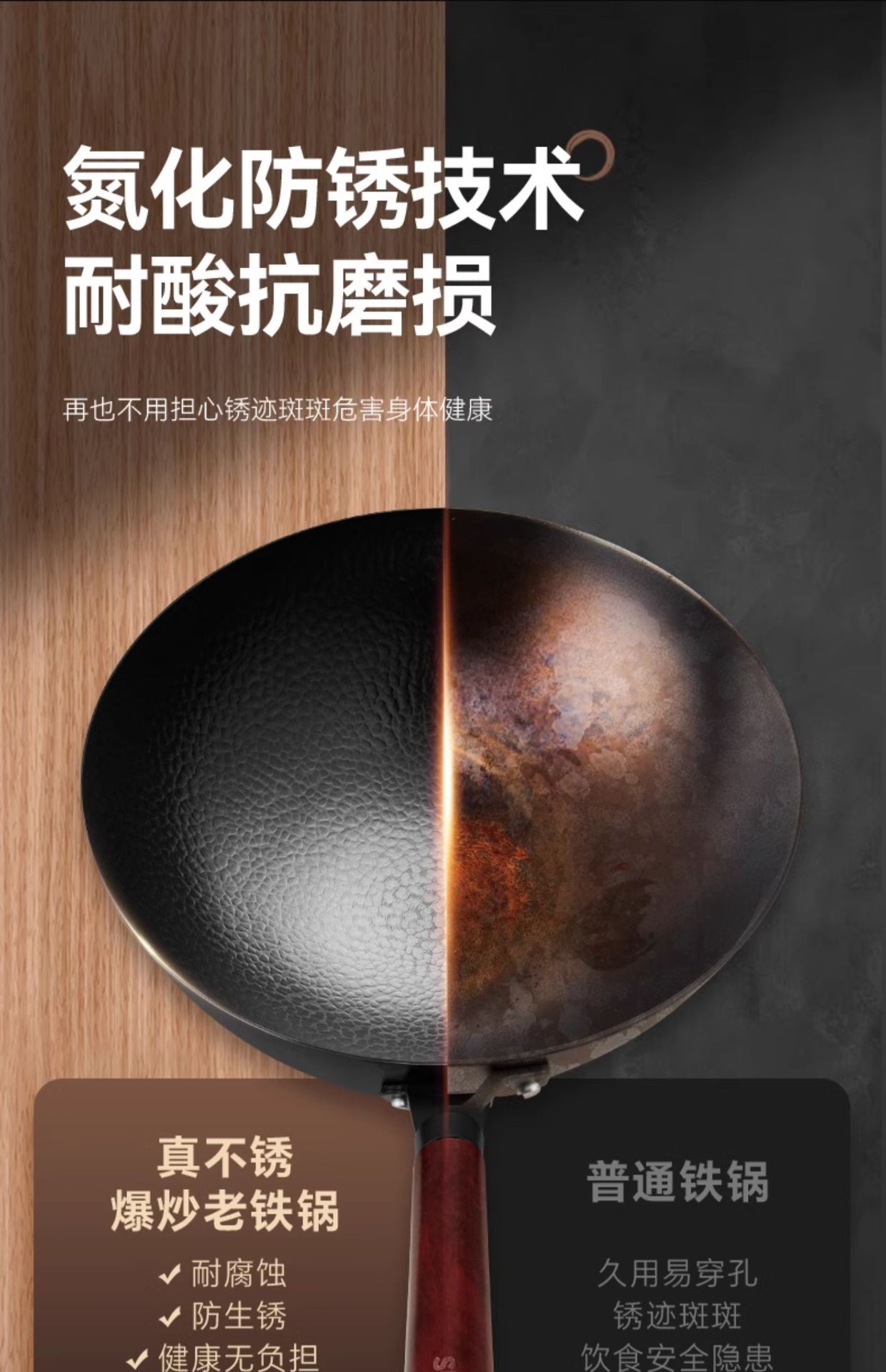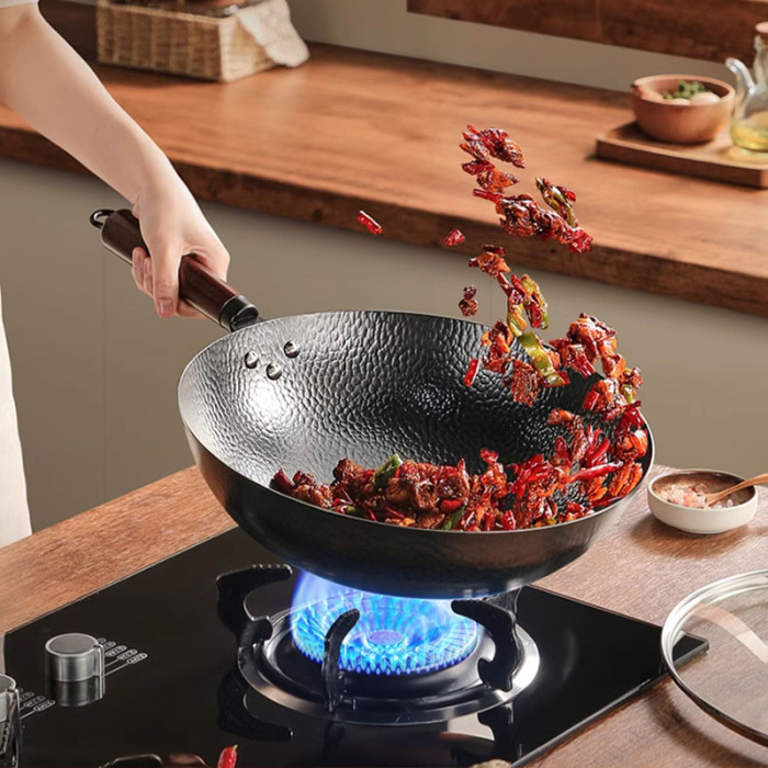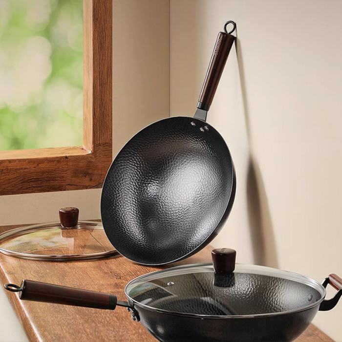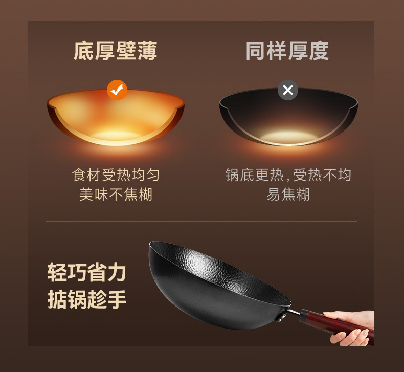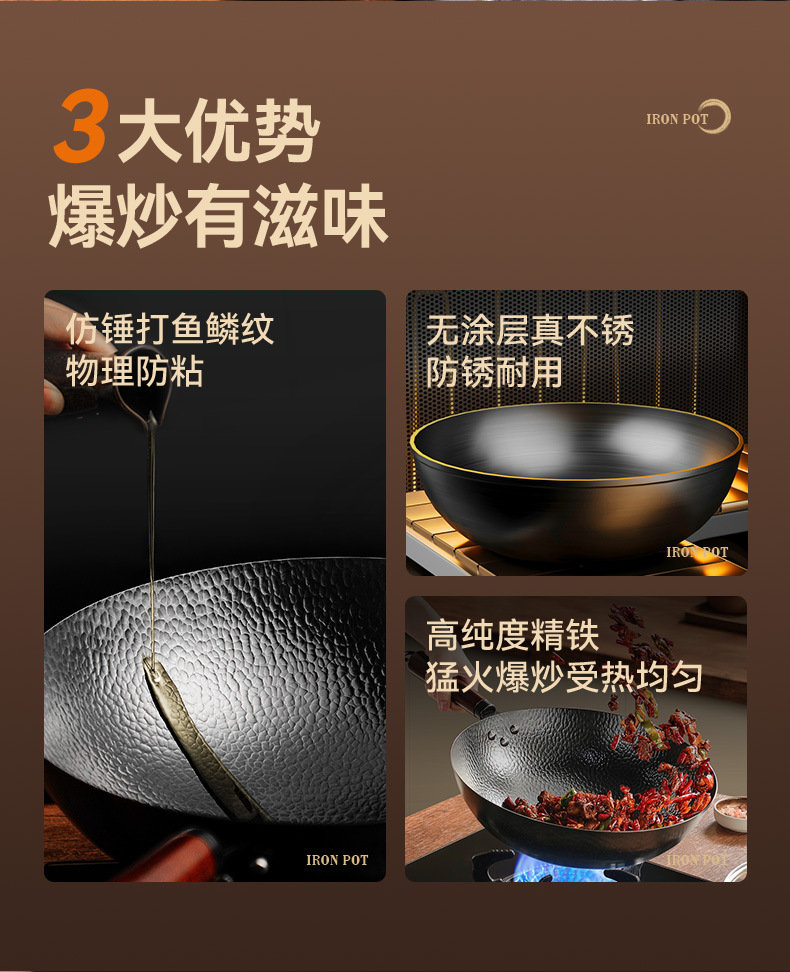 蘇泊爾鐵鍋無塗層圓底鎚紋炒菜鍋純精鐵不沾鍋瓦斯爐通用2024新款