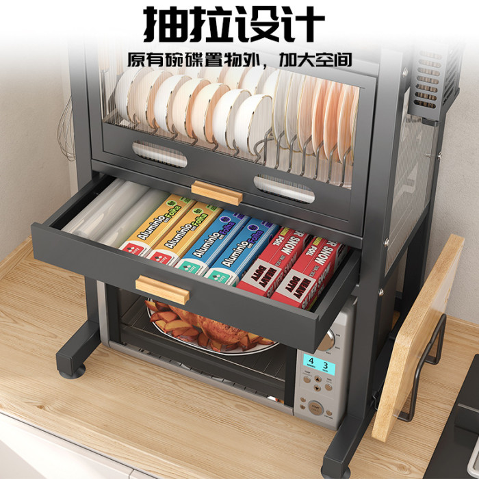 廚房微波爐置物架 台面家用烤箱架子 帶防塵碗碟瀝水架刀架收納櫃