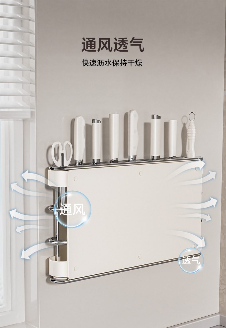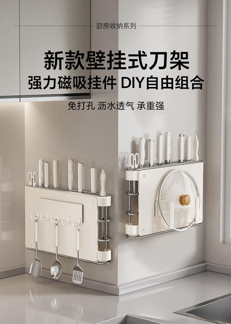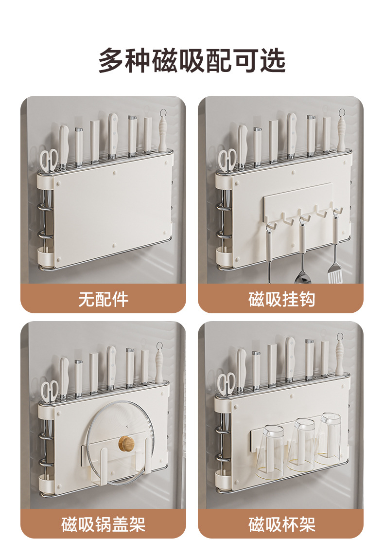 新款廚房磁吸刀架置物架壁掛多功能筷子籠菜刀菜板一體刀具收納架