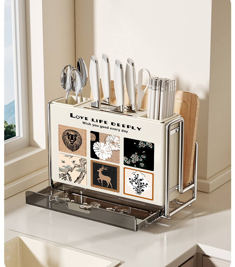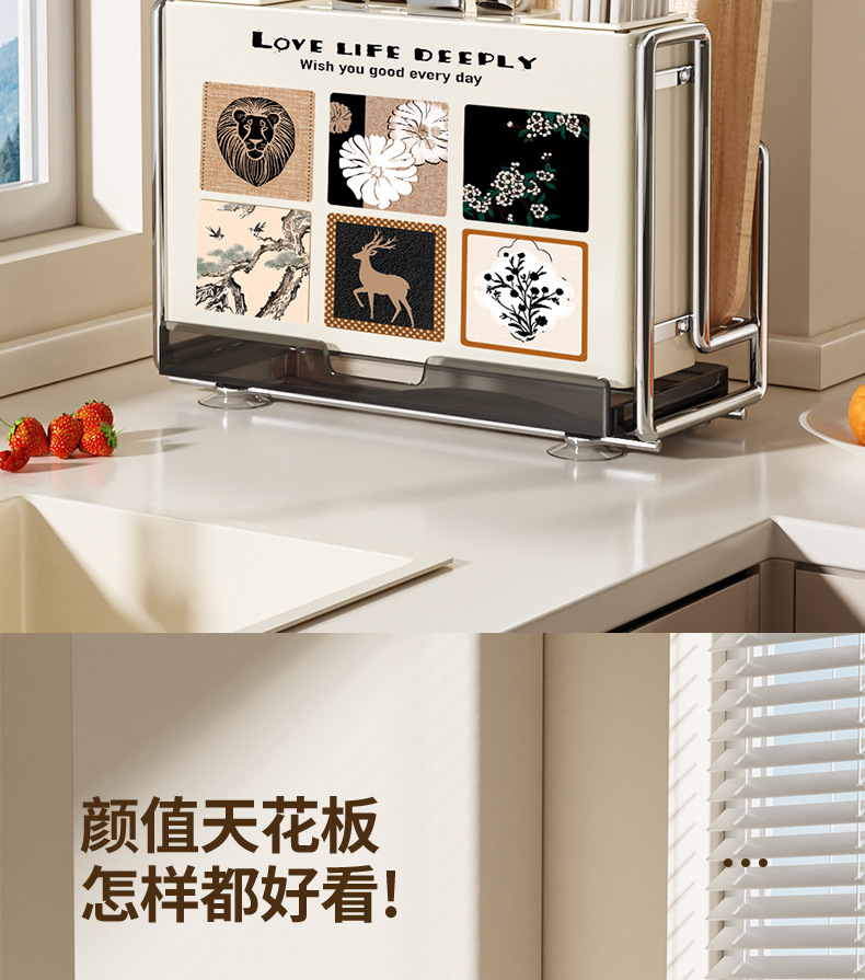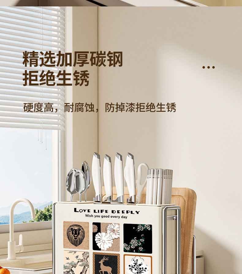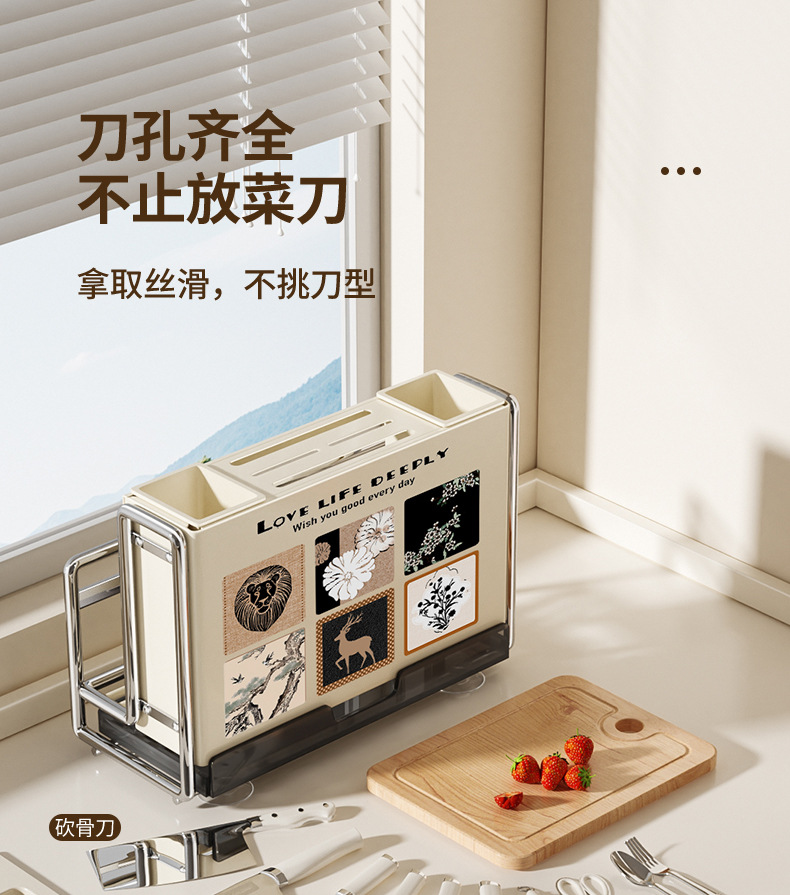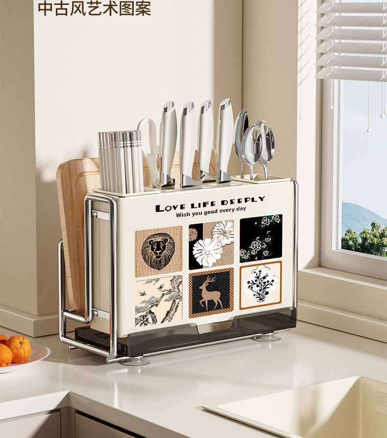 2025新款中古風廚房刀架置物架菜板刀具多功能筷子籠一體收納放置