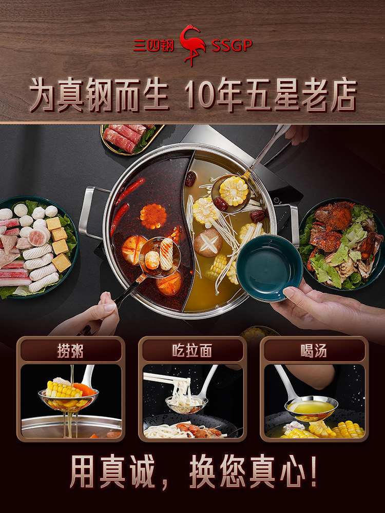 三四鋼®316不鏽鋼湯勺廚房家用大號盛湯喝湯長柄湯匙加深大勺子