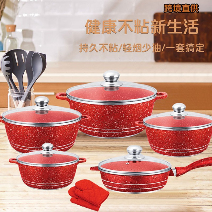 韓式鍋套裝鍋不沾鍋鋁鍋壓鑄鍋麥飯石不沾鍋