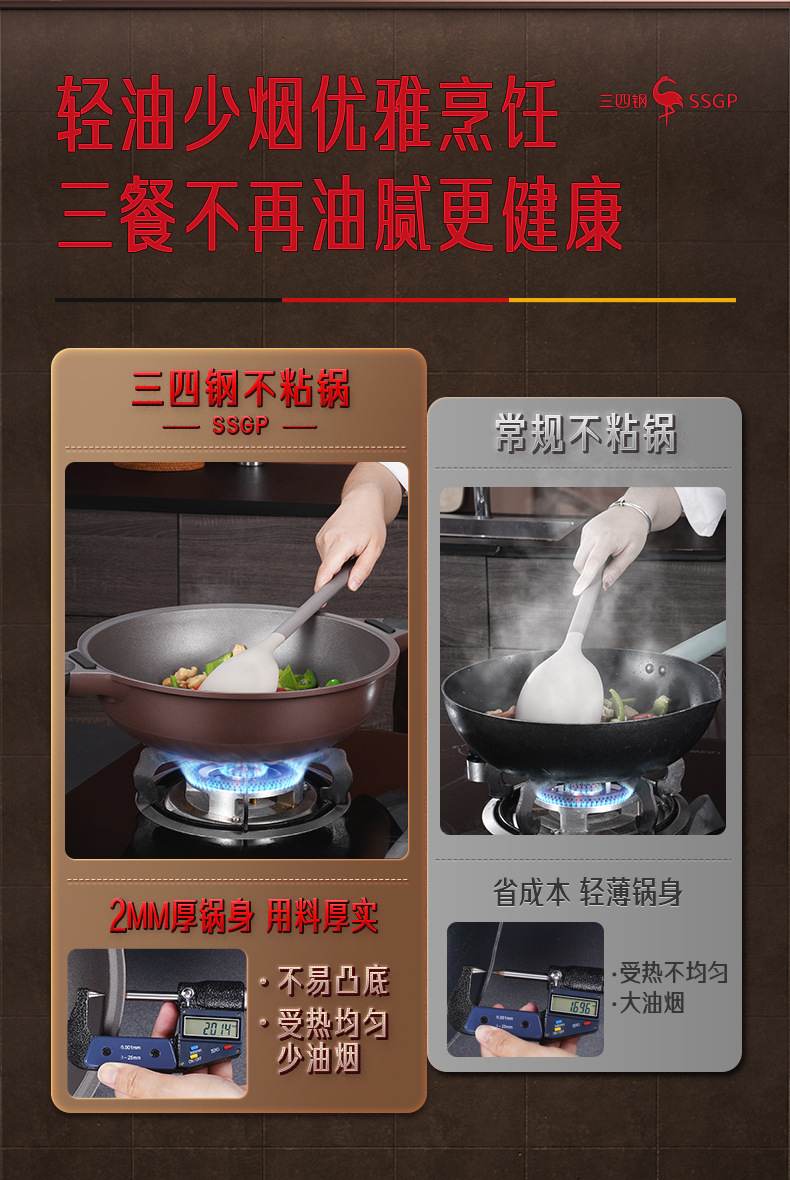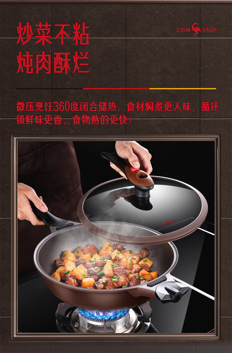三四鋼®不沾鍋家用廚房炒菜鍋煎鍋 平底鍋電磁爐瓦斯爐炒鍋