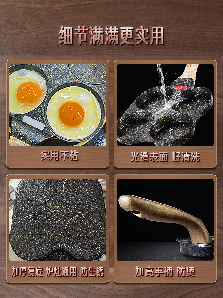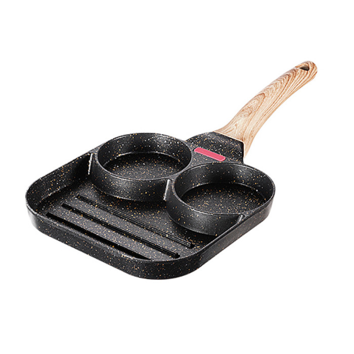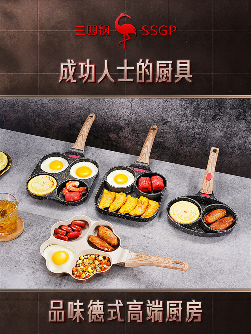 三四鋼®早餐鍋煎餅家用廚房不沾鍋煎蛋鍋感溫雞蛋漢堡三孔煎鍋