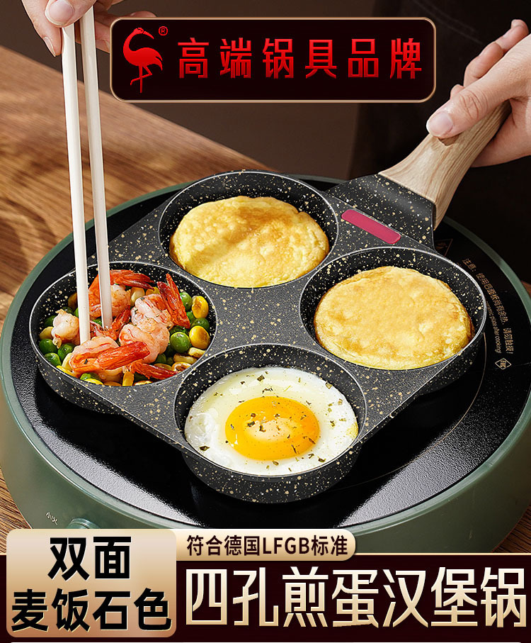 三四鋼® 四孔漢堡鍋煎餅不沾鍋煎鍋 家用廚房感溫早餐鍋煎蛋鍋