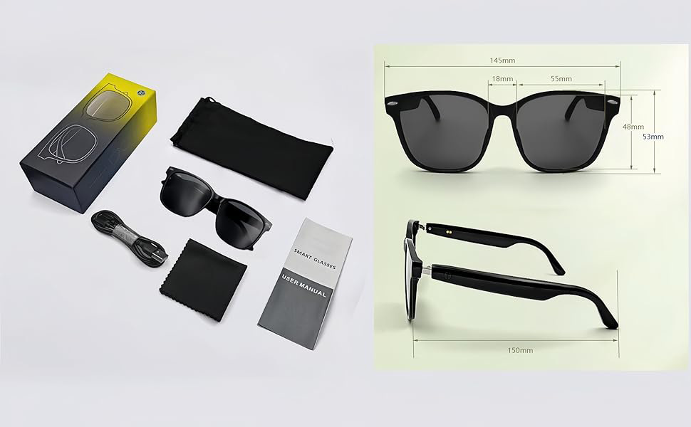 包裝清單 藍牙眼鏡/收納袋/眼鏡布/磁吸線/說明書