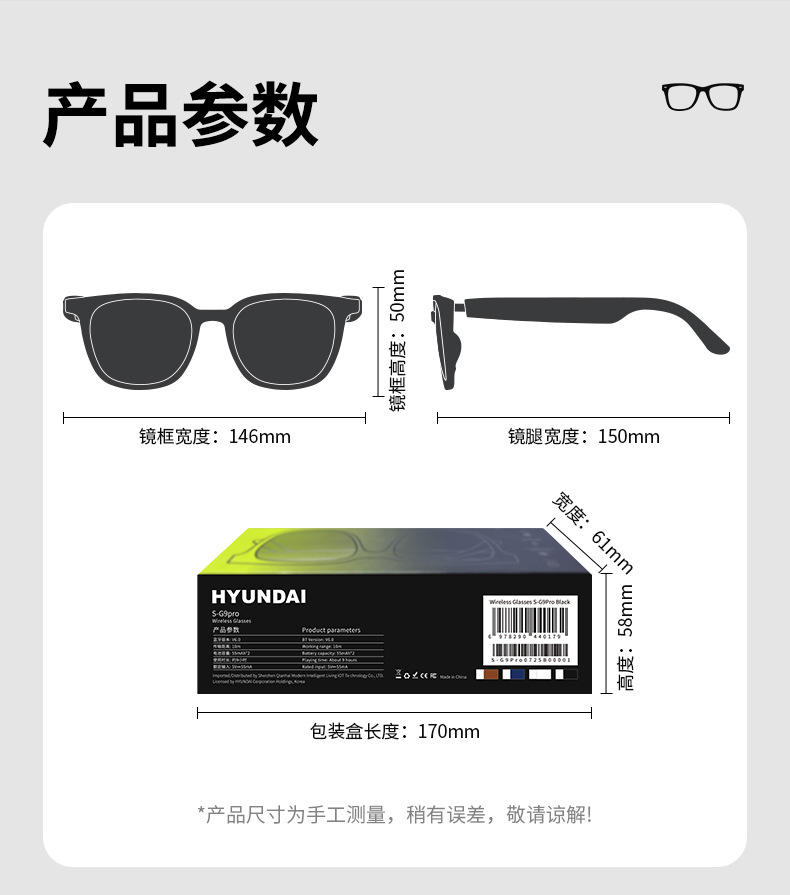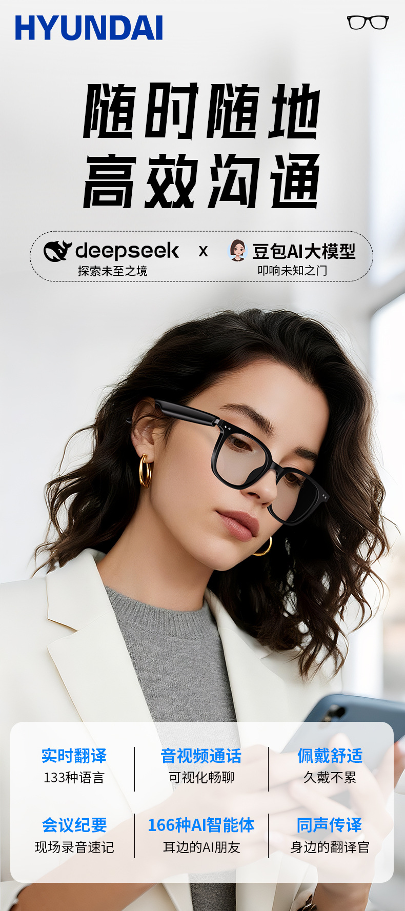 HYUNDAI現代SG-9pro藍牙智能AI翻譯眼鏡同聲傳譯黑科技可聽歌通話