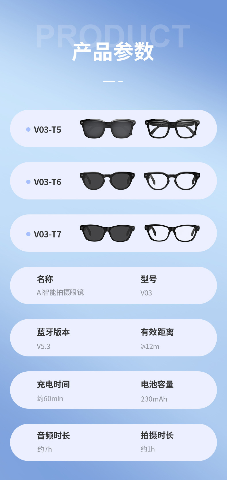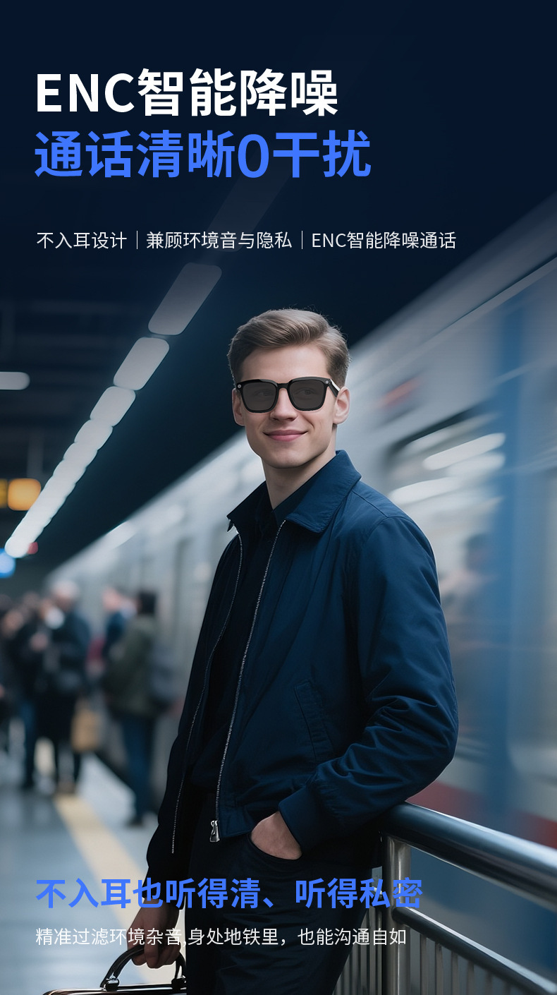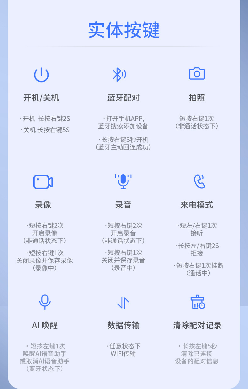 AI識別拍攝藍牙智能眼鏡800W像素拍照錄像降噪實時翻譯智能拍照眼