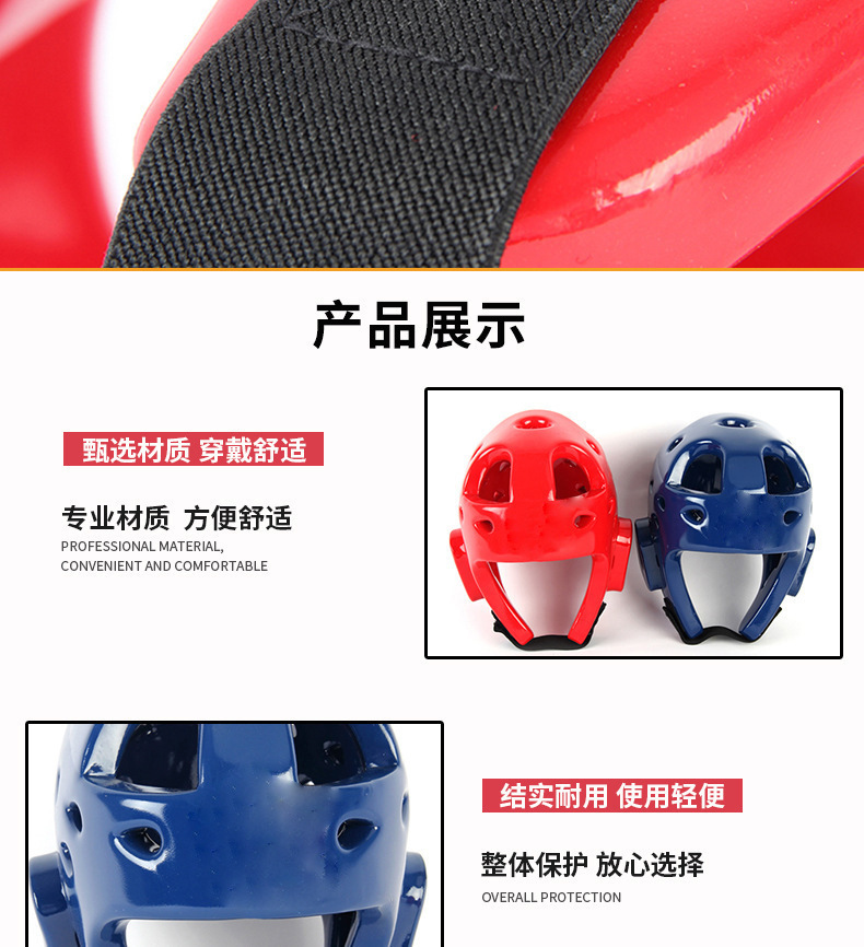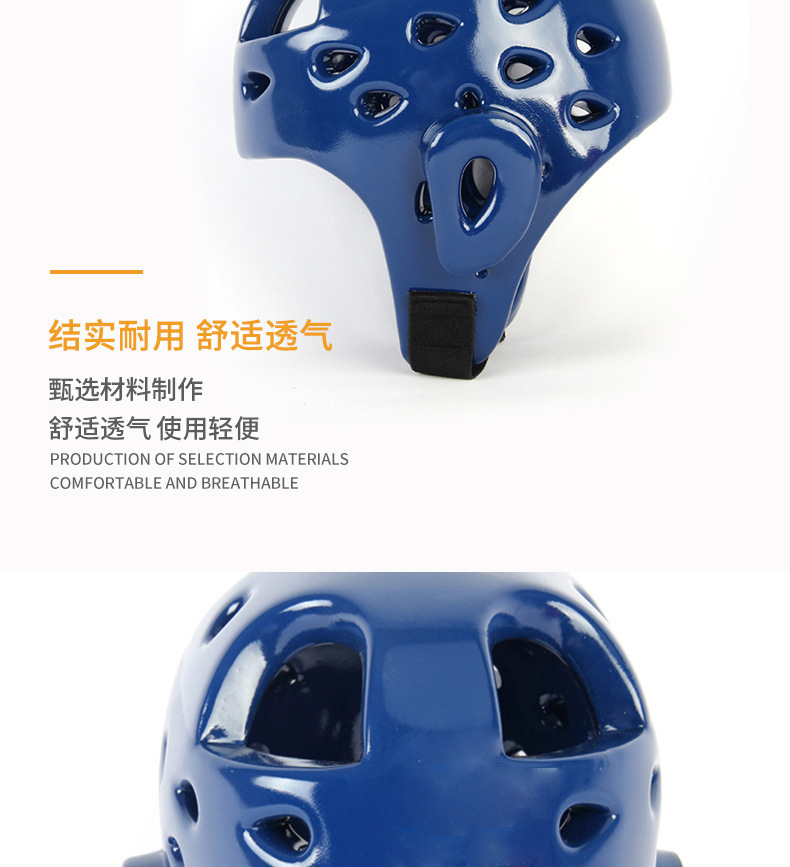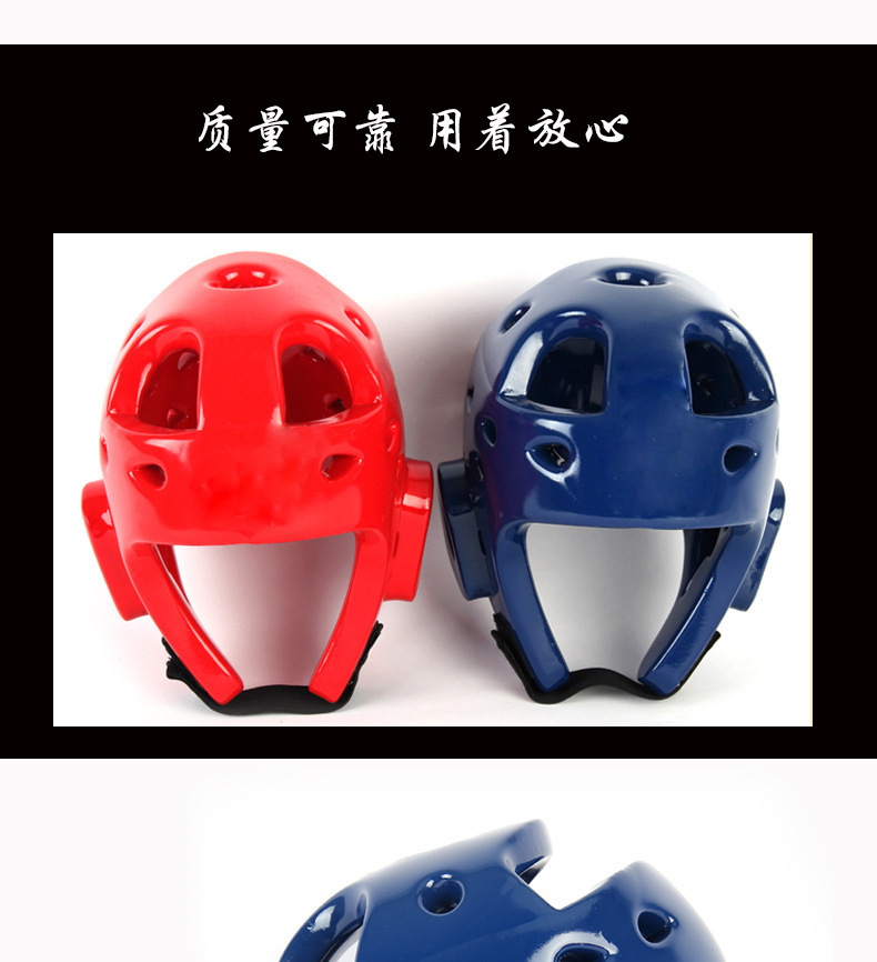 【材質說明】:一次成型,NBR泡沫+PU塗層,下巴処有粘釦連接,方便根據調整大小和戴用的松緊度。厚度2cm,額頭処加厚(3cm厚),防護更有效。武術搏擊運動必不可少的護具。
