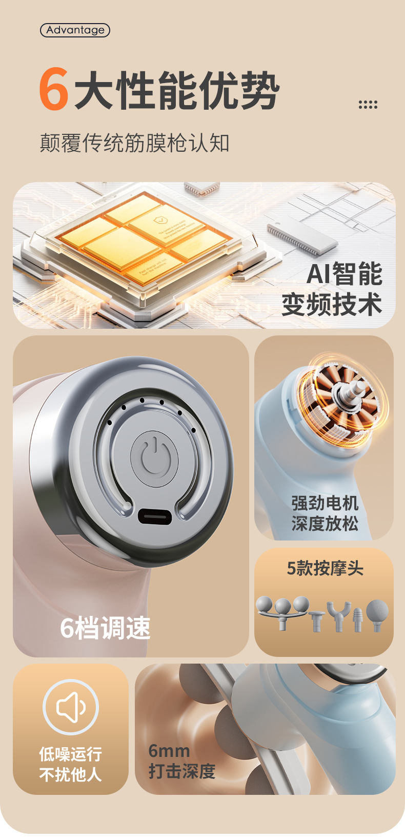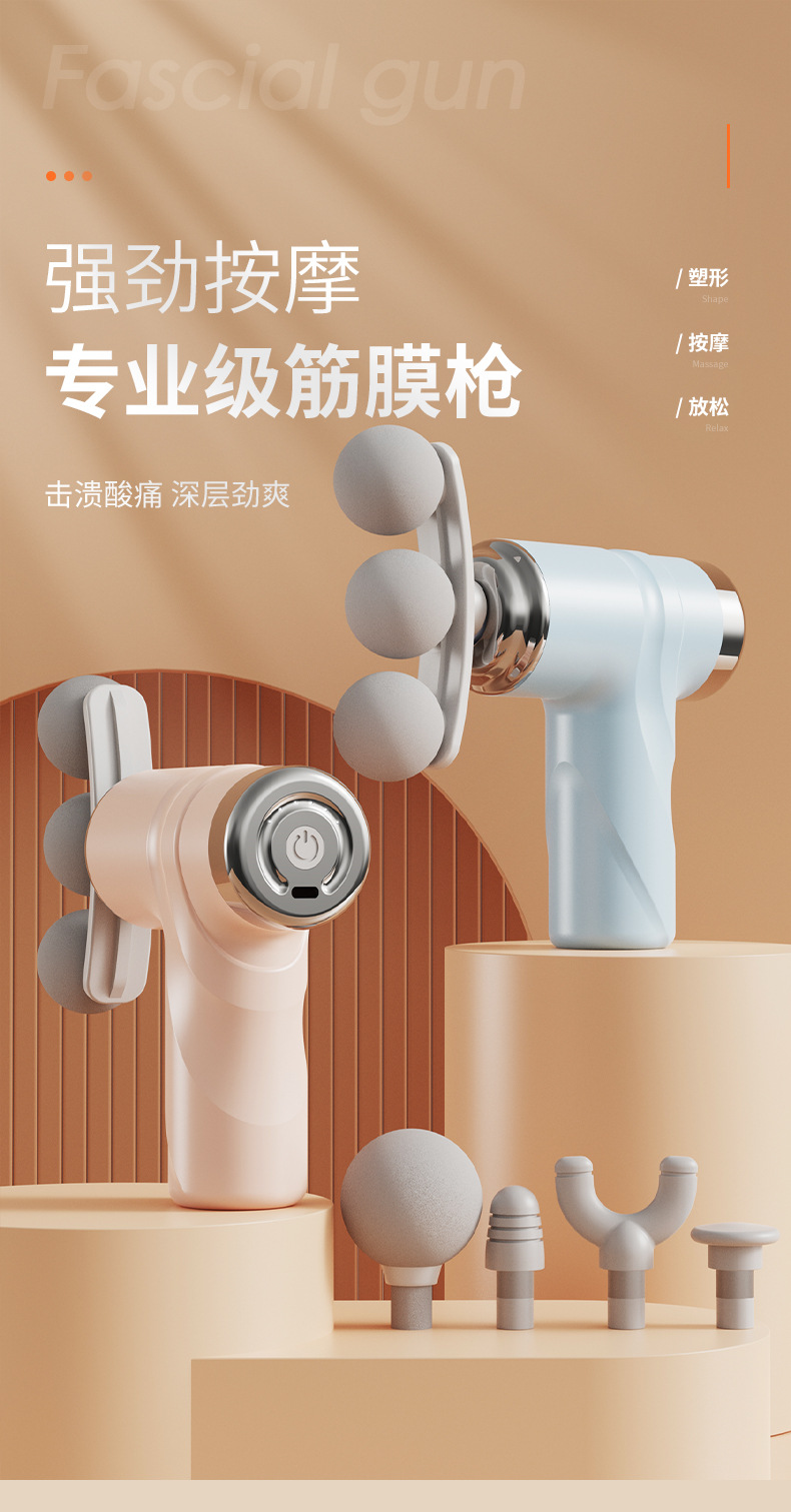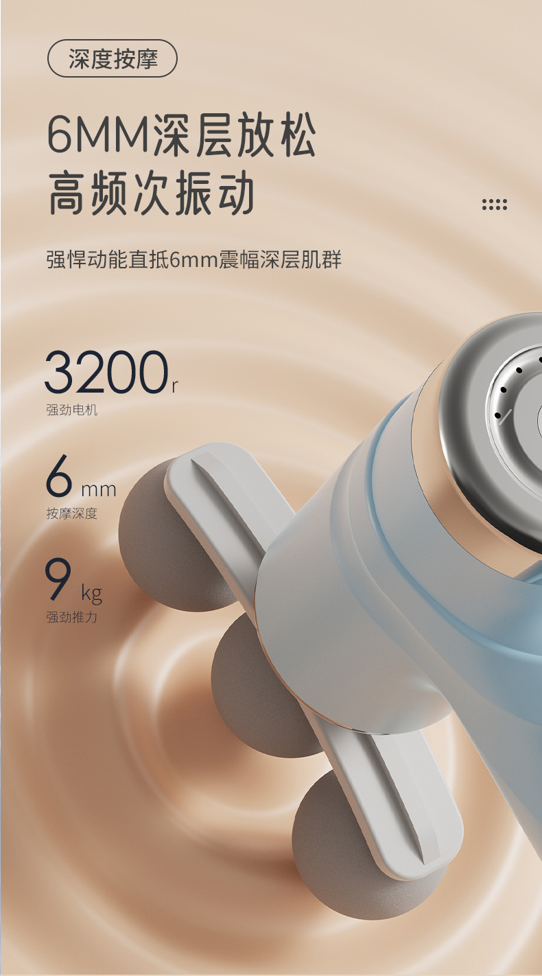 3頭筋膜槍肩腰背部按摩儀9頭可換身體辦公家用按摩器深層擊打