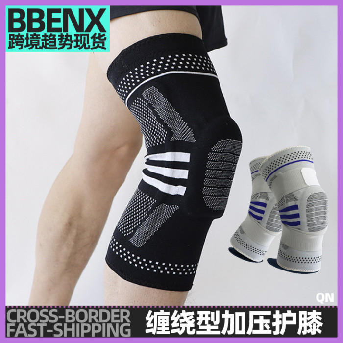 纏繞型加壓護膝矽膠彈簧尼龍護膝運動籃球跑步騎行羽毛球膝蓋護具
