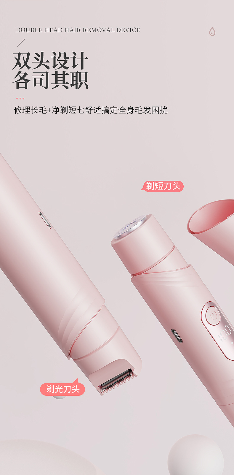 脫毛器女士雙頭剃毛器私処隂毛修剪器電動刮毛刀男女脫毛
