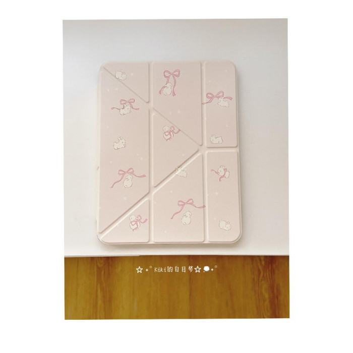 kiki原創/兔兔蝴蝶結粉色星星適用於ipad保護殼平板保護套亞克力高防彎硬Y折書本有筆槽air611英寸mini6筆槽