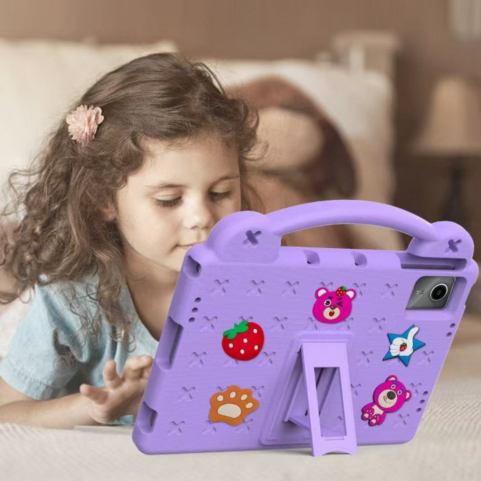 卡通草莓熊兒童平板保護套適用蘋果ipadAir11EVA防摔Pro13手提便捷ipad10隱形支架mini6兒童保護殼pro12.9寸
