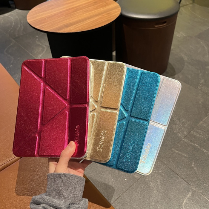 鐳射Y折平板殼適用蘋果ipad10代平板保護套ipadair6三折Y折mini7/air5/air2簡約ipadpro代喚醒睡眠ipad9/A16