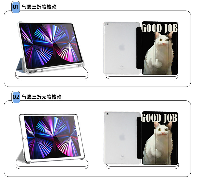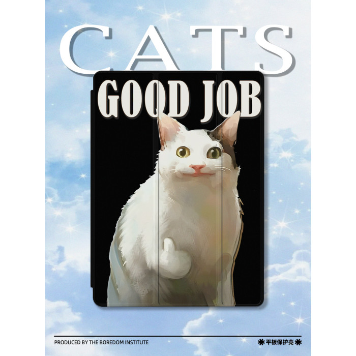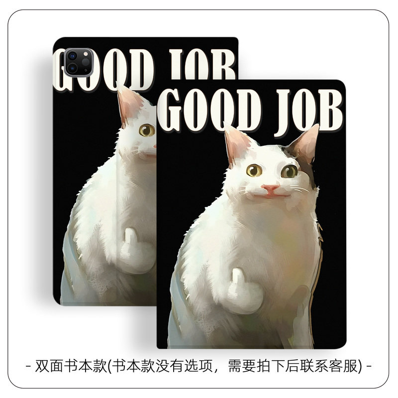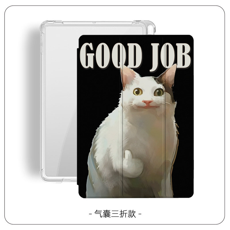ins可愛小貓表情包爲你點贊簡約復古歐美潮流適用於蘋果2022款iPadPro12.9/11三折保護殼air5/mini6防摔ipad