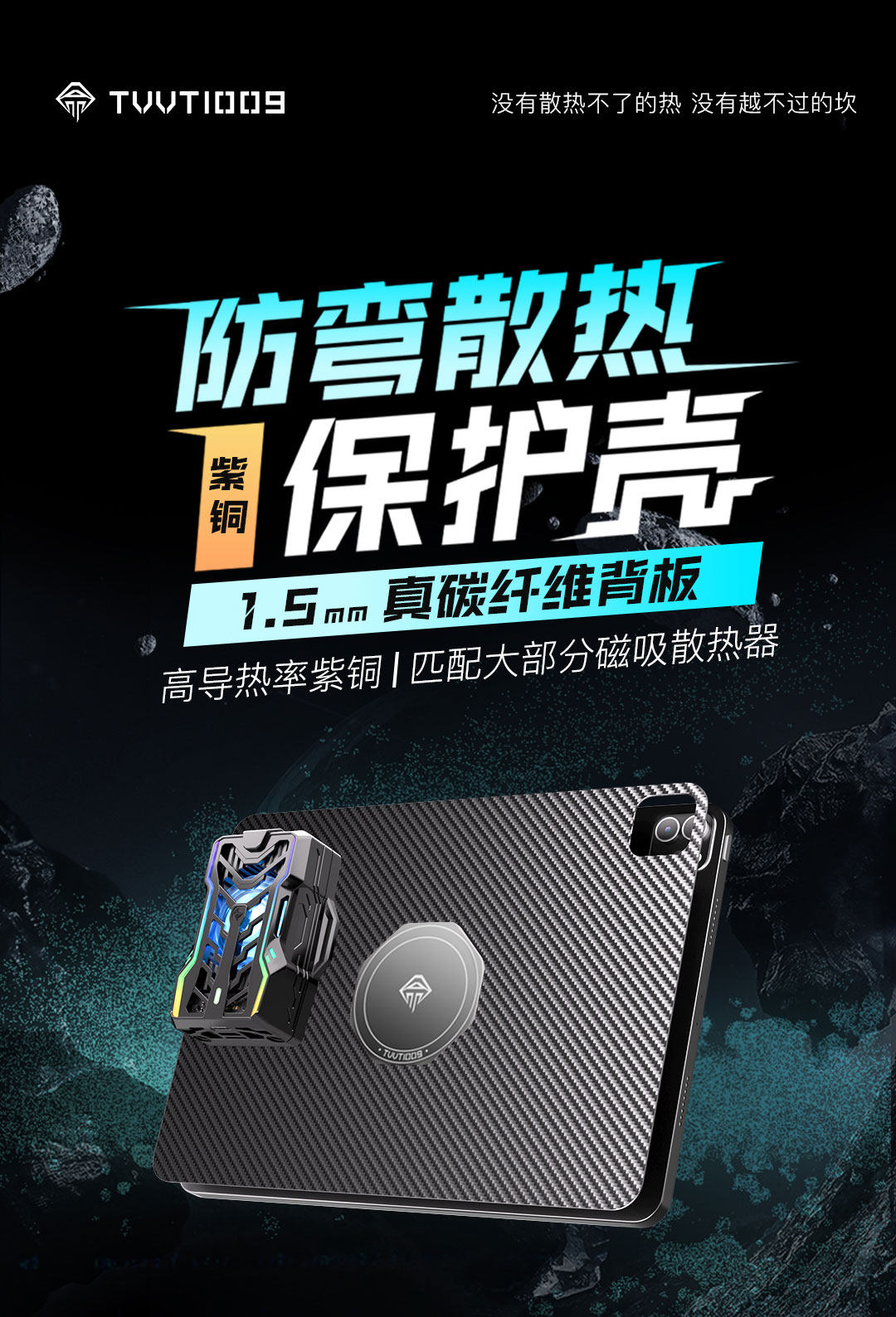 ipad碳纖維防彎散熱保護殼拿命散熱TVVT1009平板mini611寸12.9寸無邊框磁吸背板導熱內置磁鐵保護套