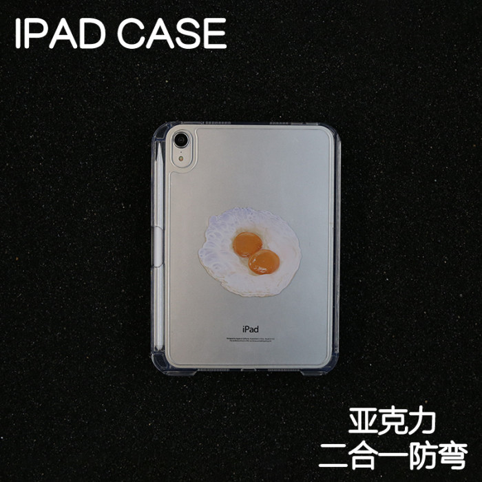 煎蛋藝術拆分亞克力ipad7/8/9保護套2024硬殼Air456蘋果12.9pro11/10.9背殼iPad10.2防摔13寸Air7筆槽mini6/7
