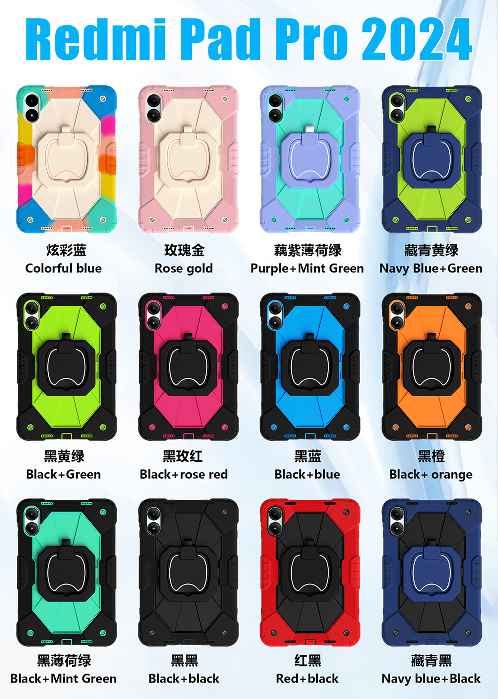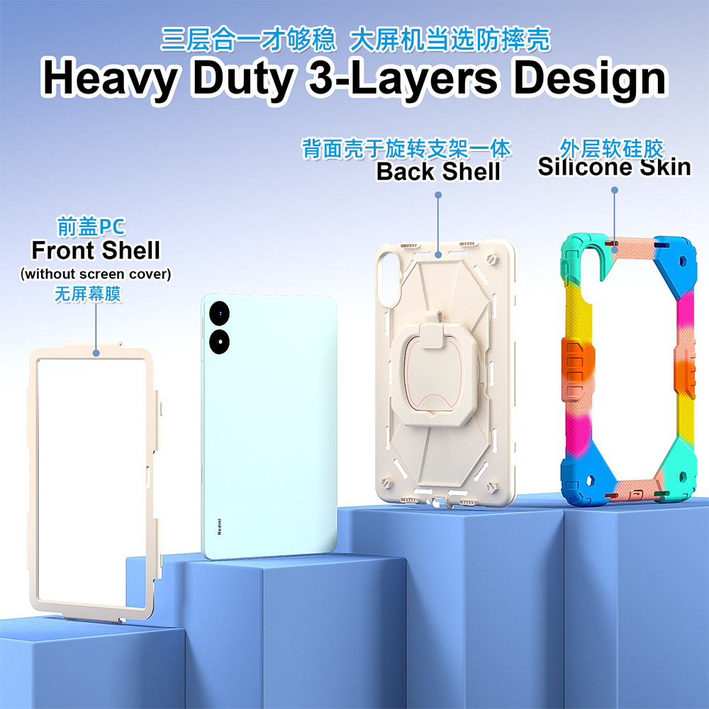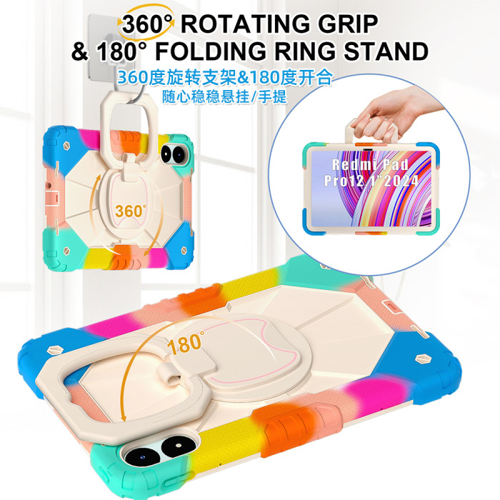 適合紅米平板pro保護套可旋轉小米poco pad12.1寸殼全包矽膠redmi2024款學習平板防摔手提懸掛護眼鋼化膜pad2
