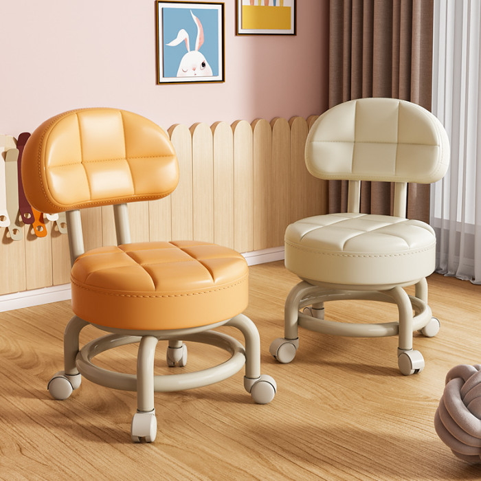 【免運】萬向輪小凳子滑輪矮凳家用換鞋凳客廳兒童帶輪圓板凳帶娃靠背椅子