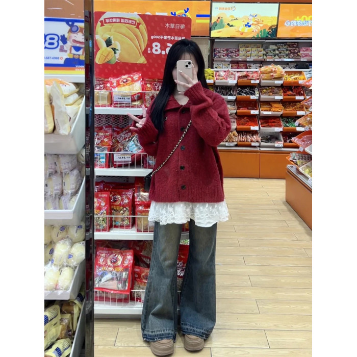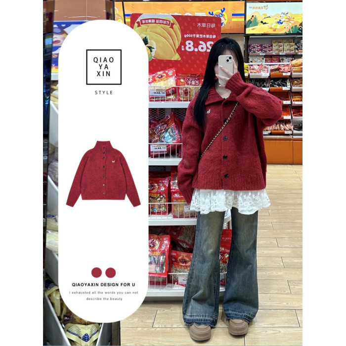 新年過年聖誕紅色針織毛衣女秋冬季2025慵懶高級感小個子外穿上衣