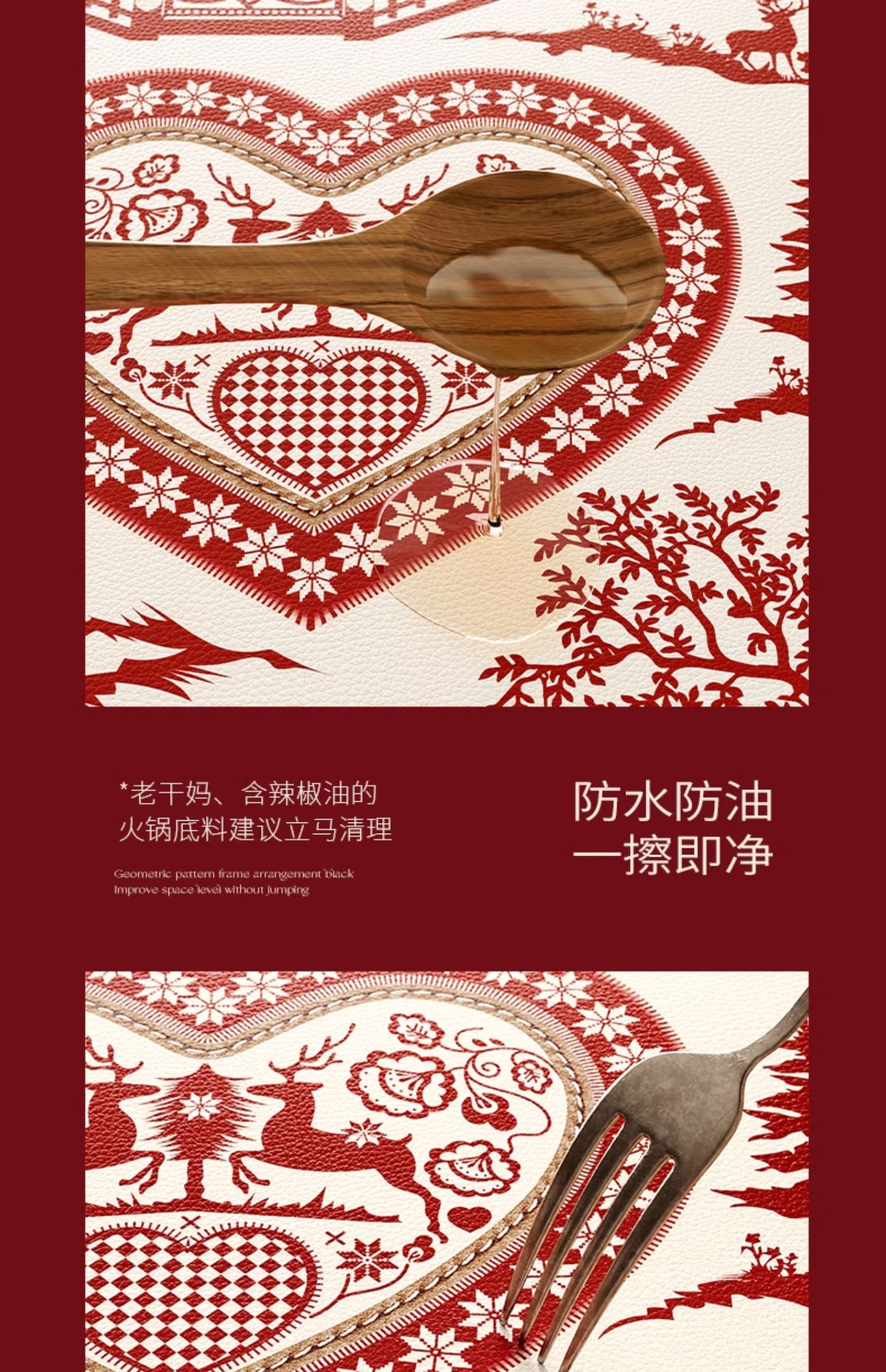 奇妙夜新年紅色餐墊防水防油防燙隔熱墊聖誕高級感西餐墊碗墊杯墊