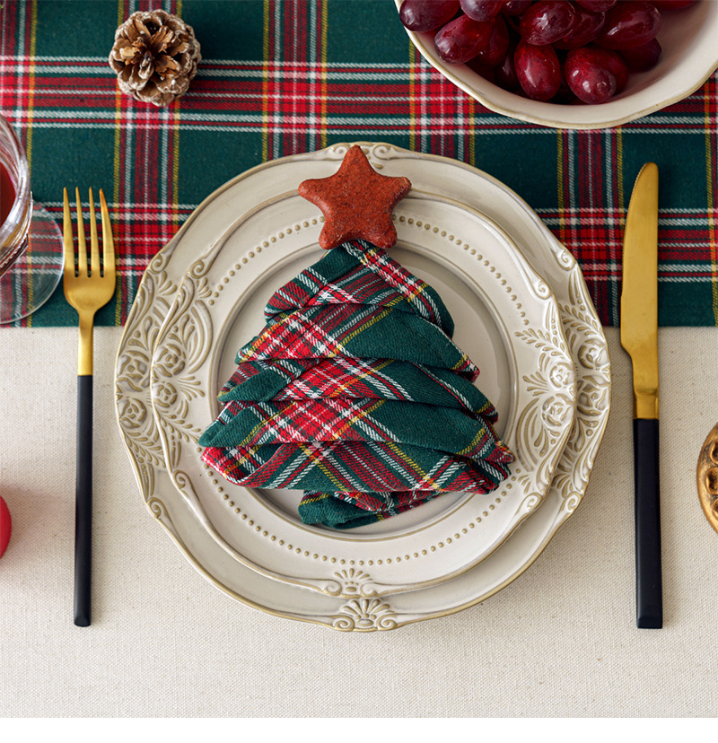 復古聖誕家庭家居氛圍餐廳桌旗墊桌布美式鄕村茶幾派對聚會餐具墊