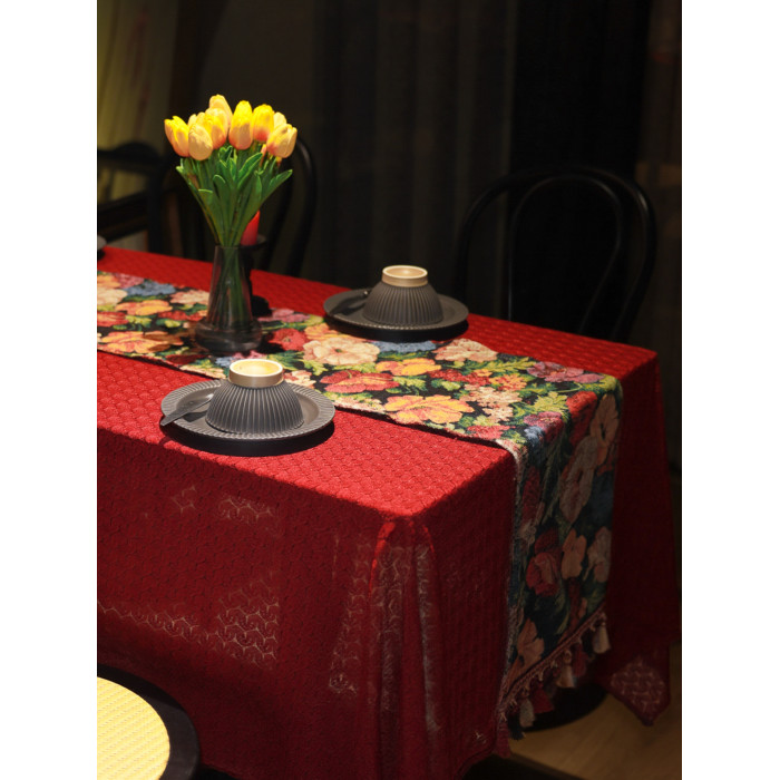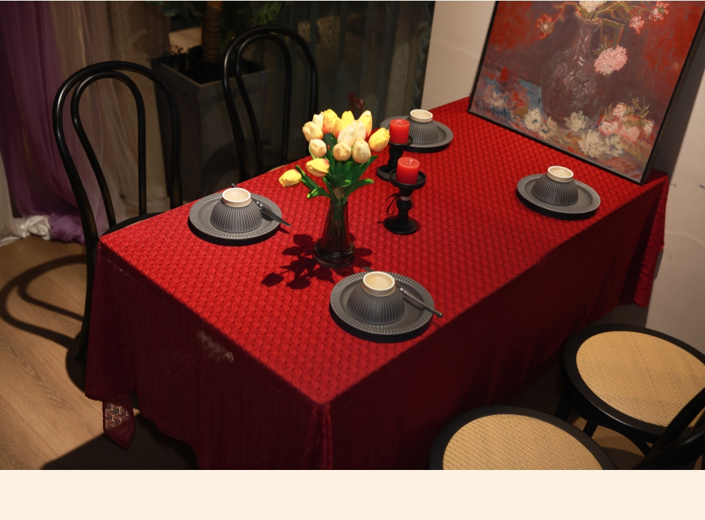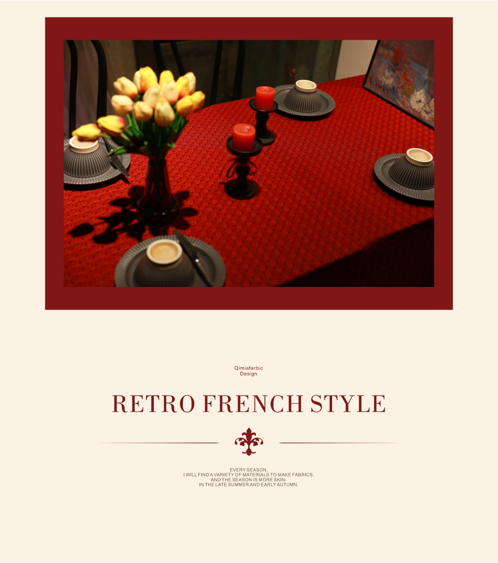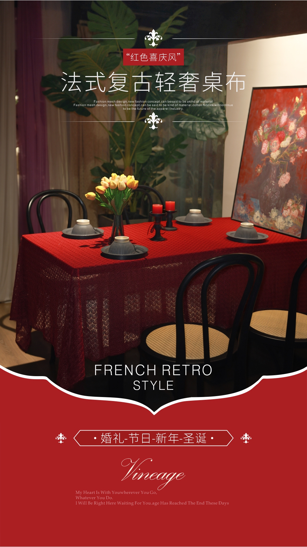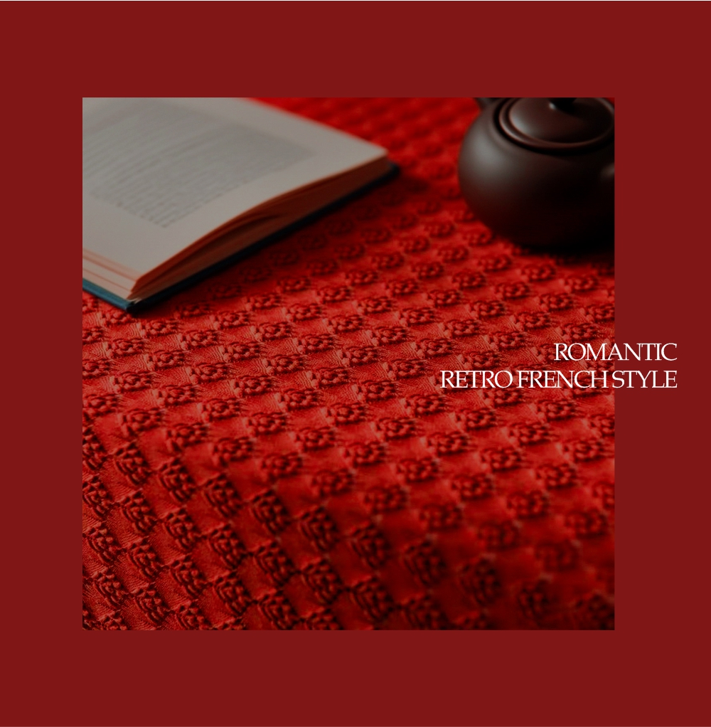 法式復古紅色喜慶桌布婚禮新年聖誕節氛圍感圓桌方桌茶幾餐桌台布