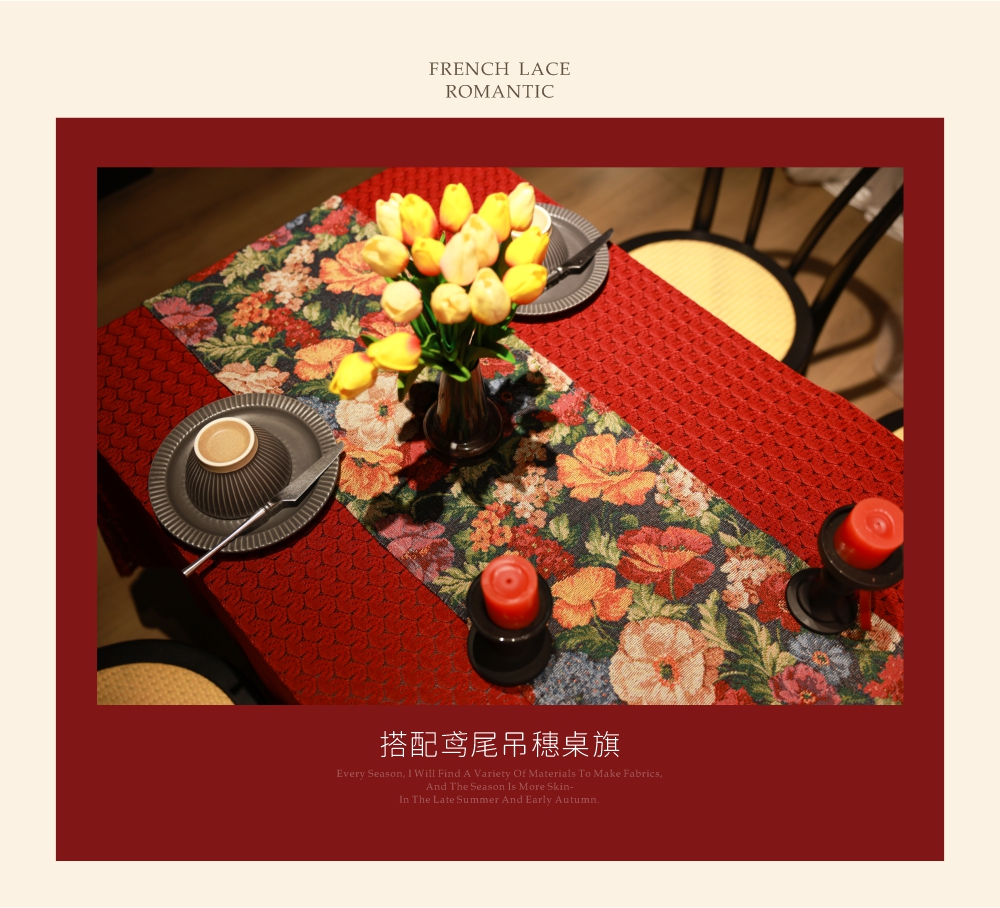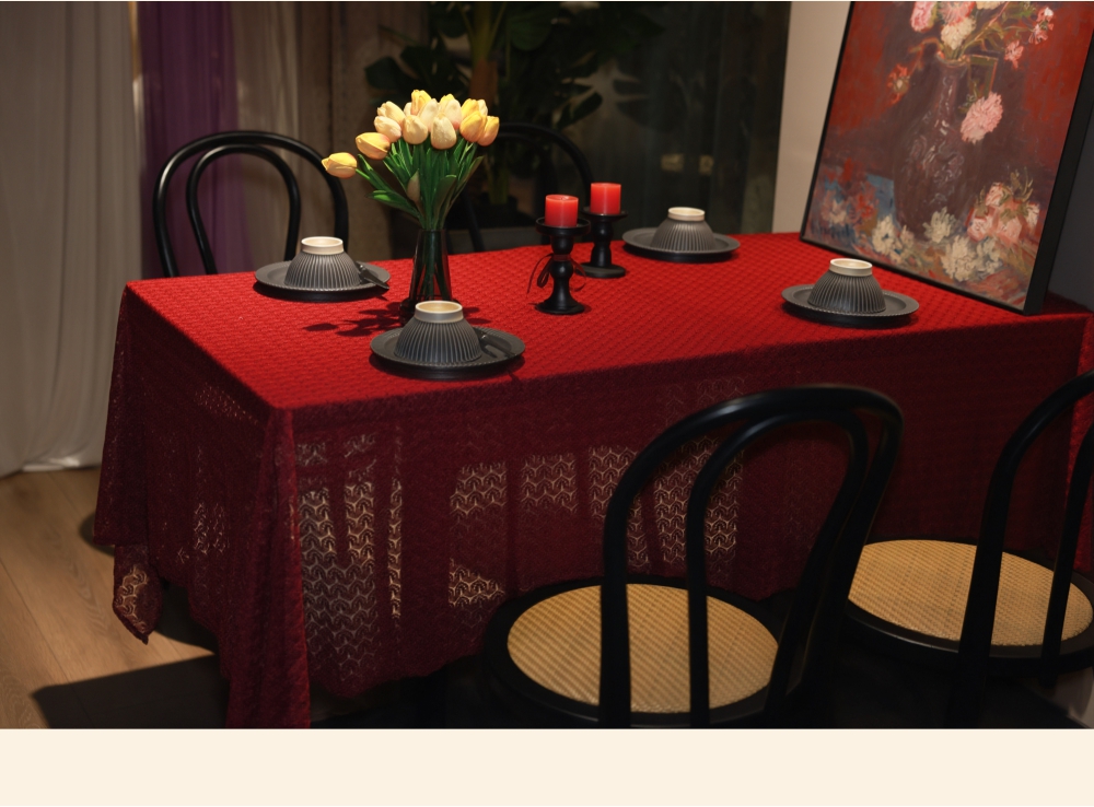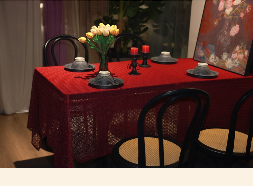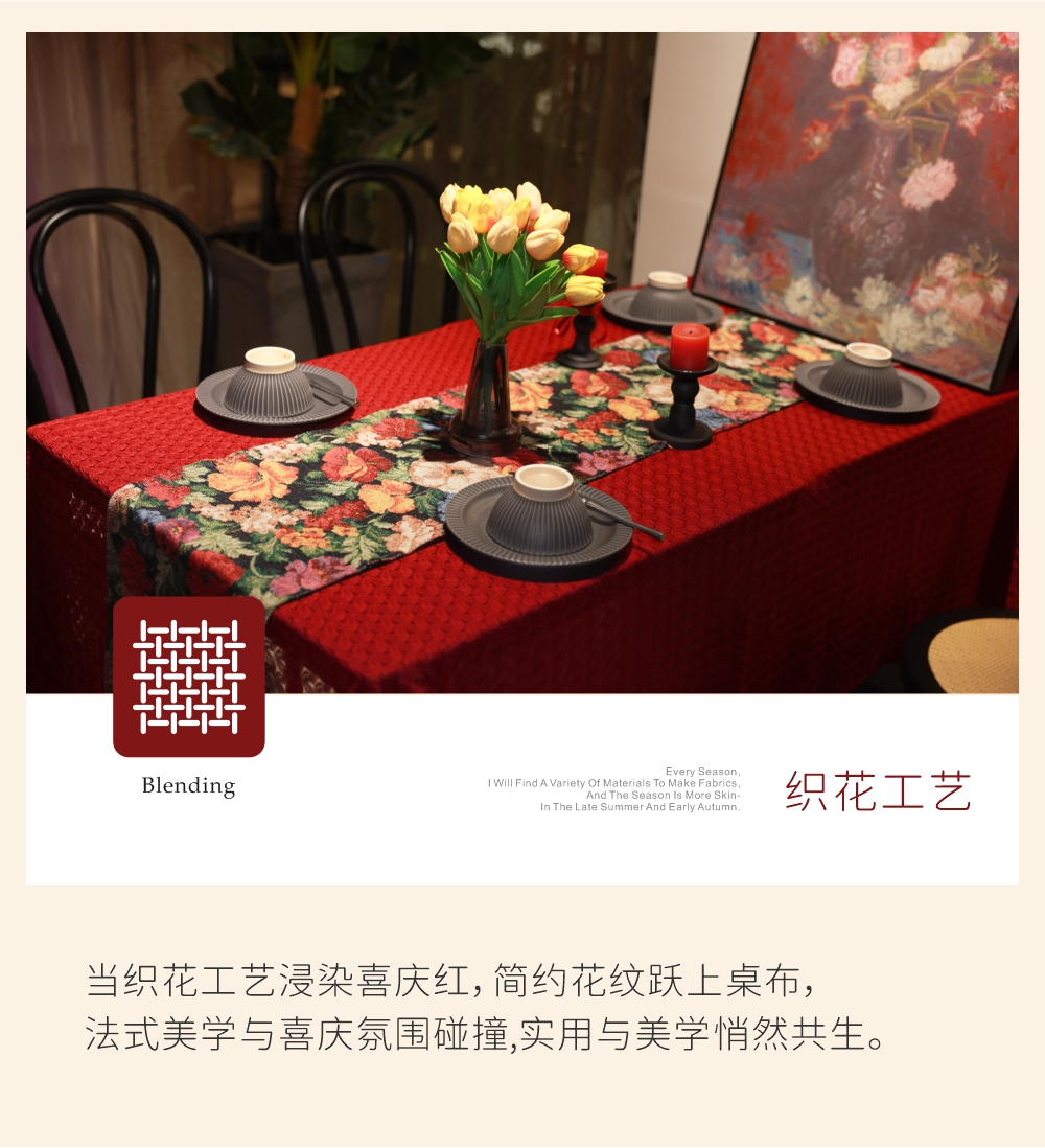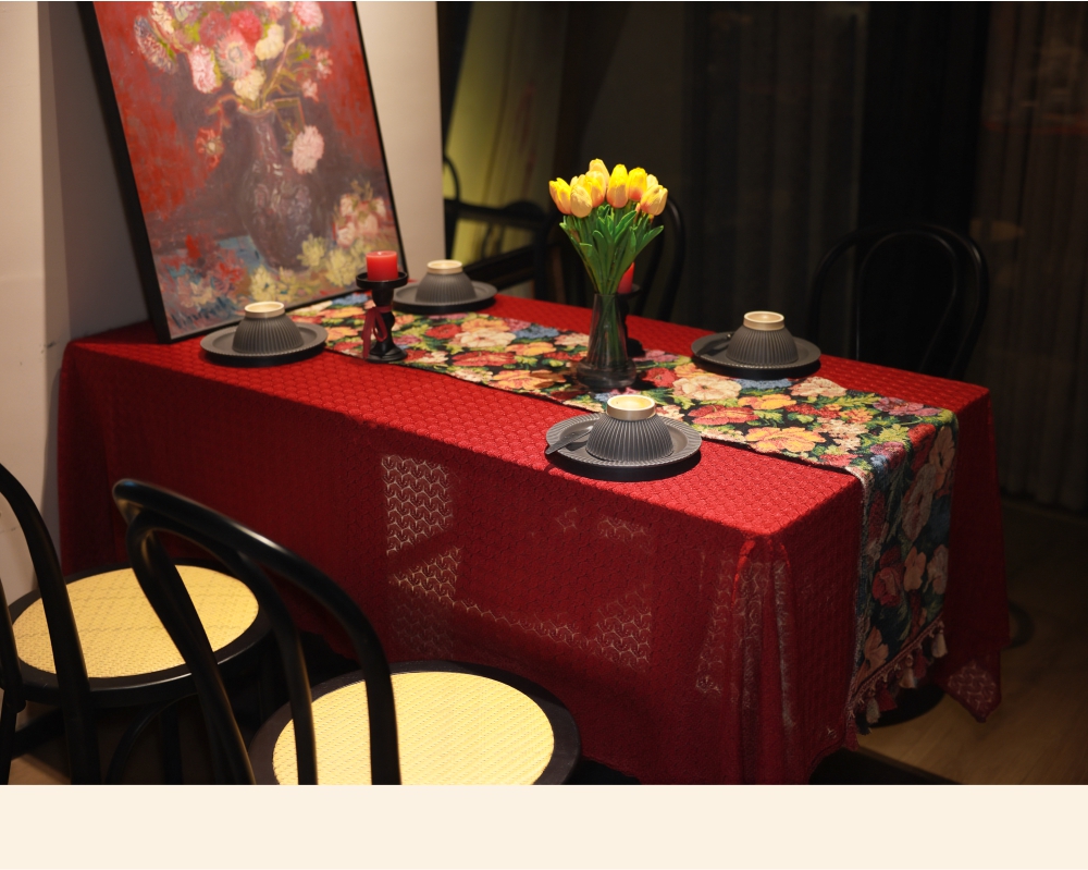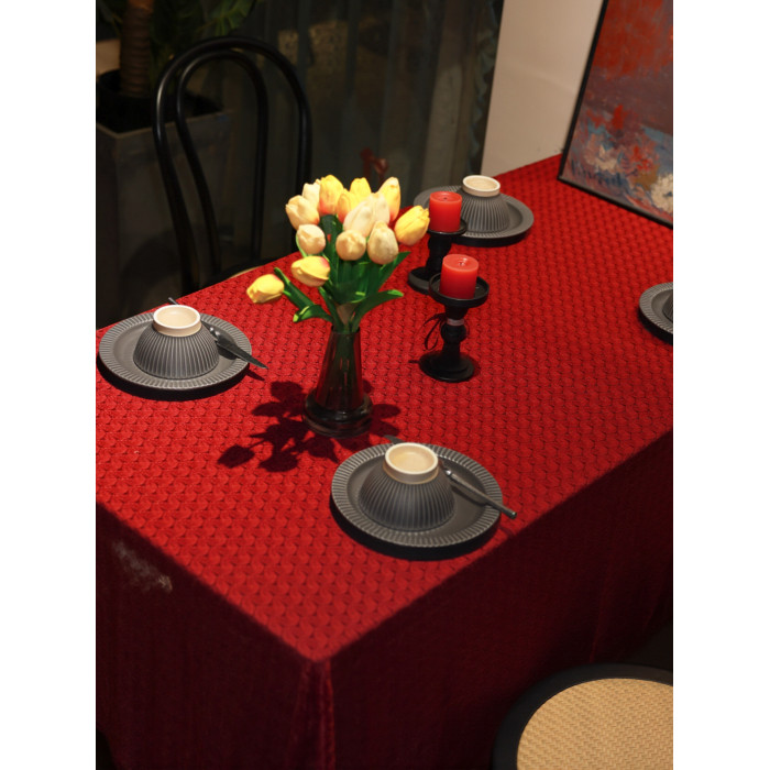 法式復古紅色喜慶桌布婚禮新年聖誕節氛圍感圓桌方桌茶幾餐桌台布
