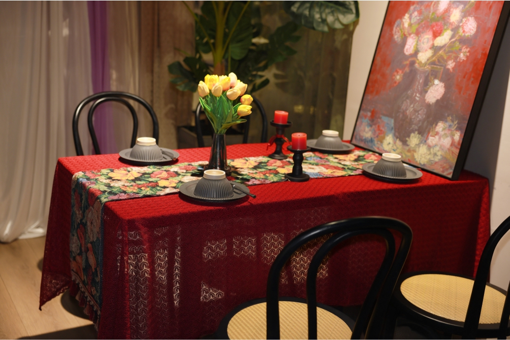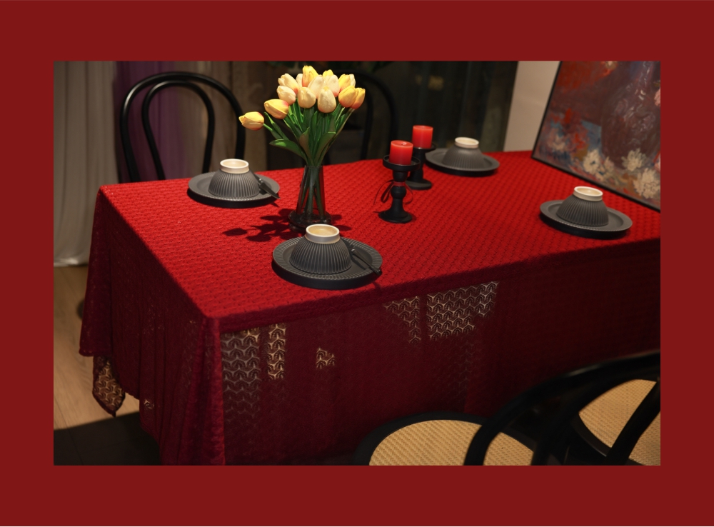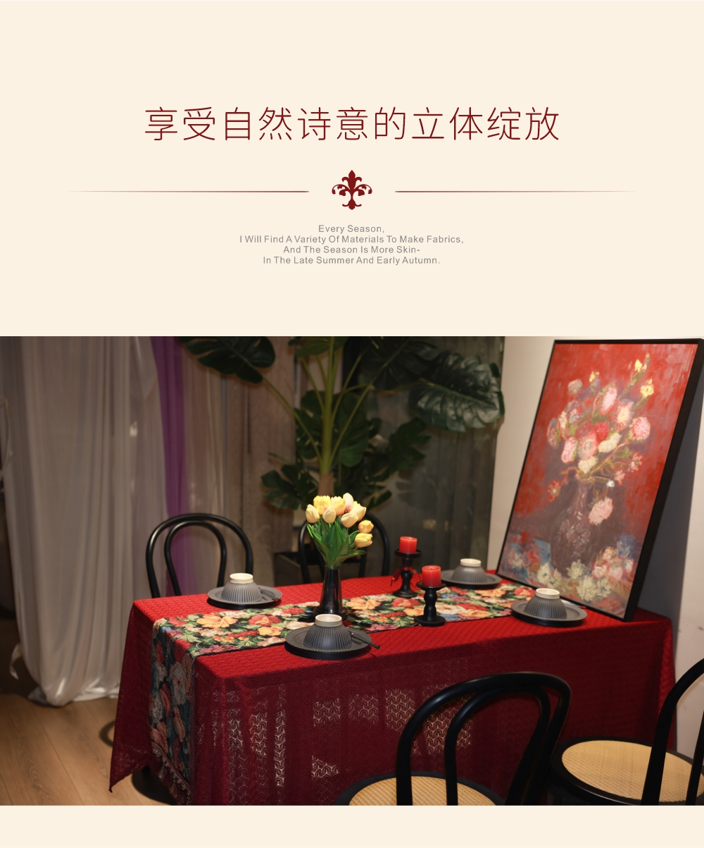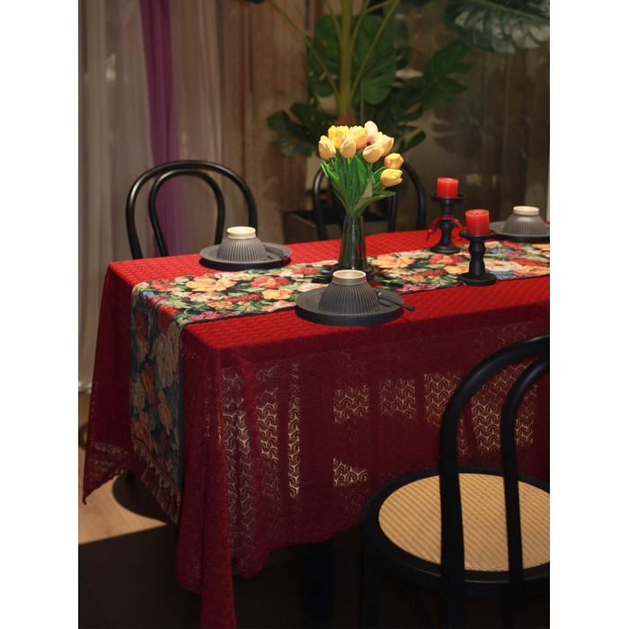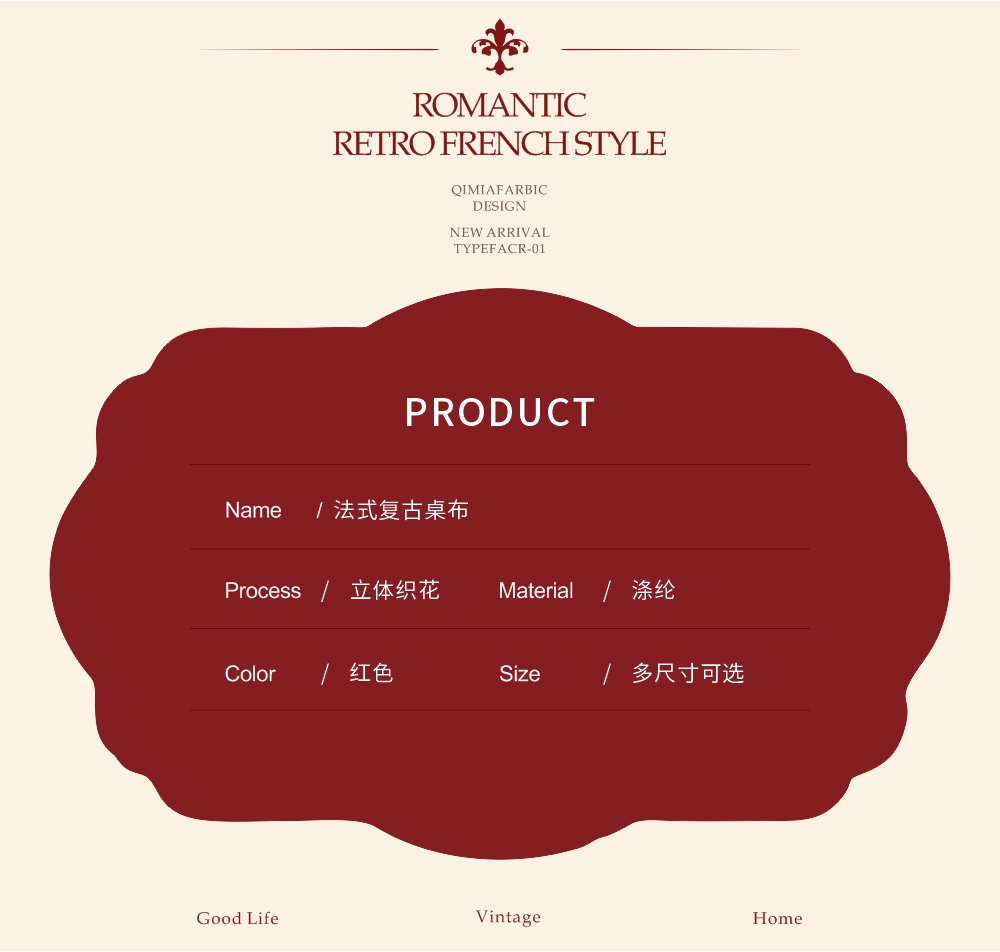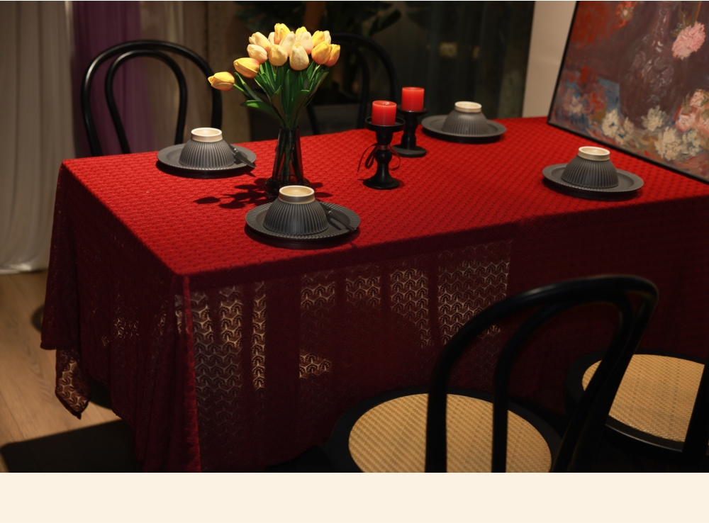 法式復古紅色喜慶桌布婚禮新年聖誕節氛圍感圓桌方桌茶幾餐桌台布