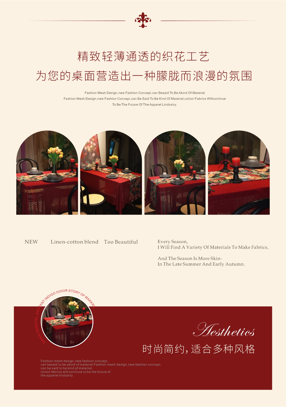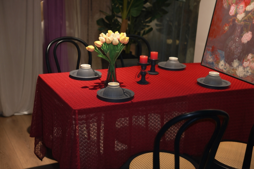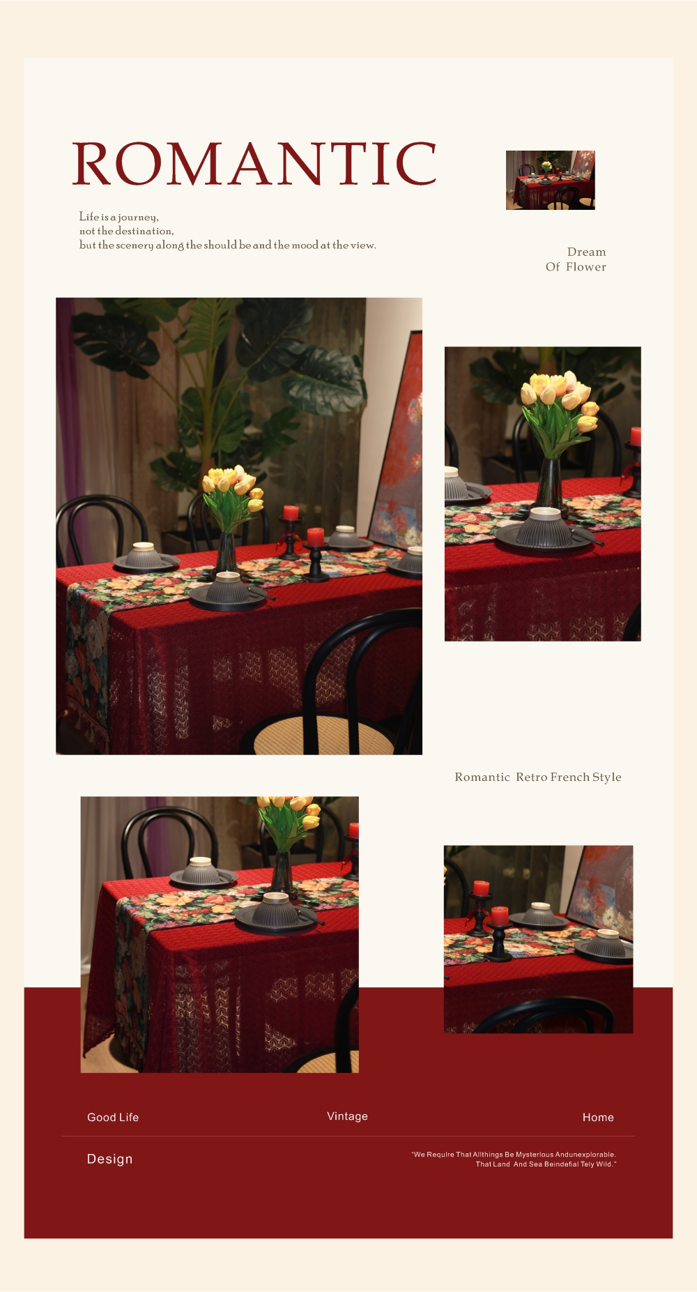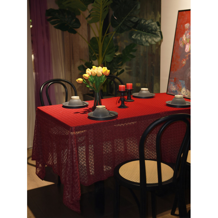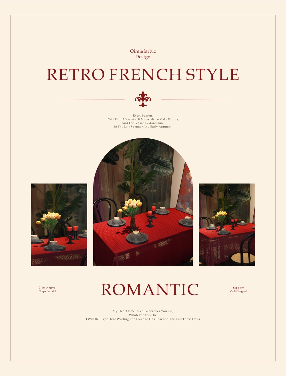 法式復古紅色喜慶桌布婚禮新年聖誕節氛圍感圓桌方桌茶幾餐桌台布