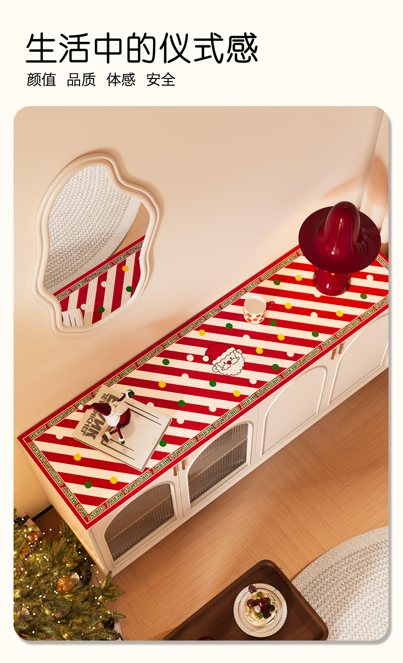 藝喜緣 聖誕餐邊櫃桌墊輕奢高級感 節慶電視櫃台面保護墊聖誕裝飾