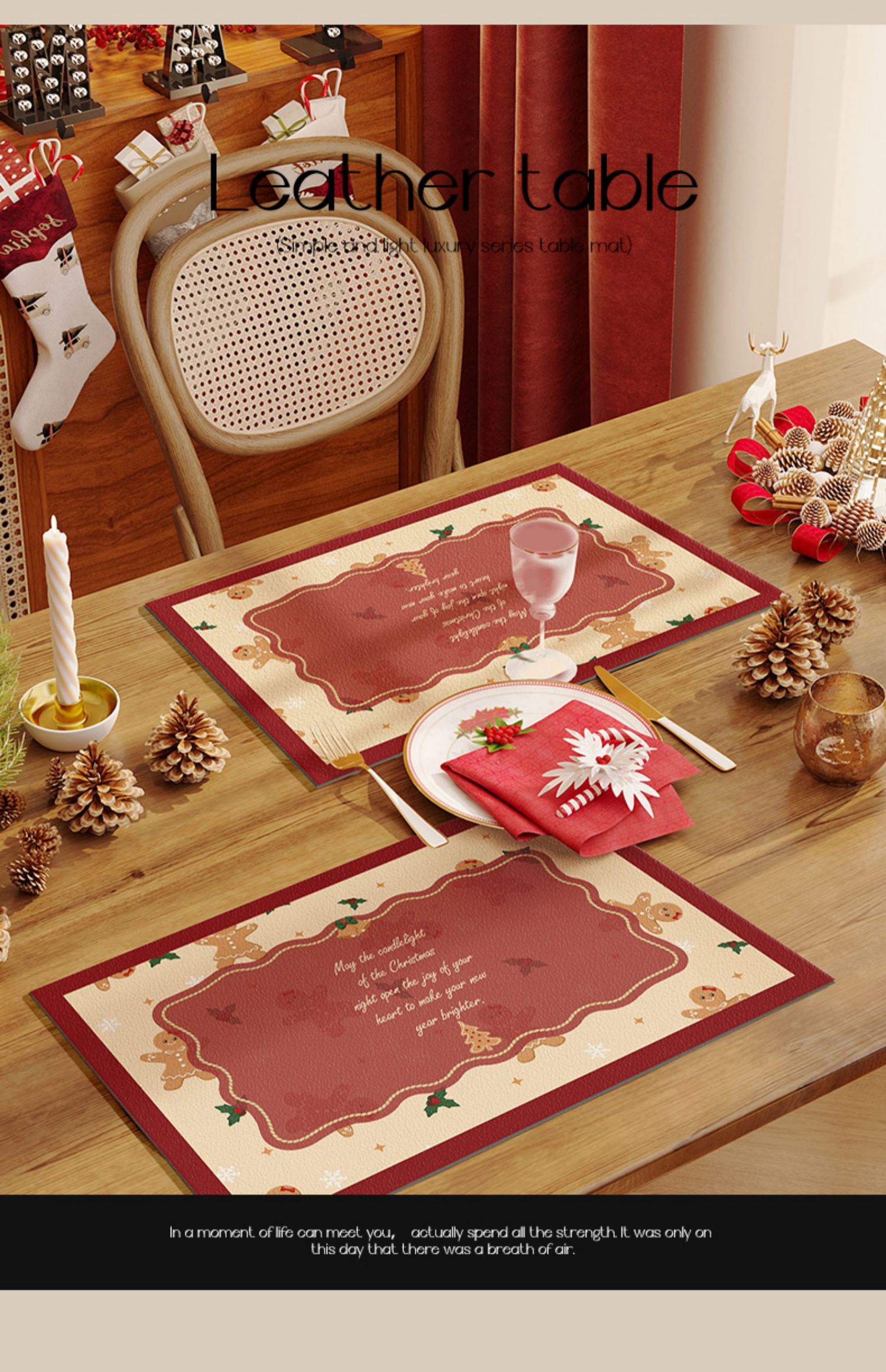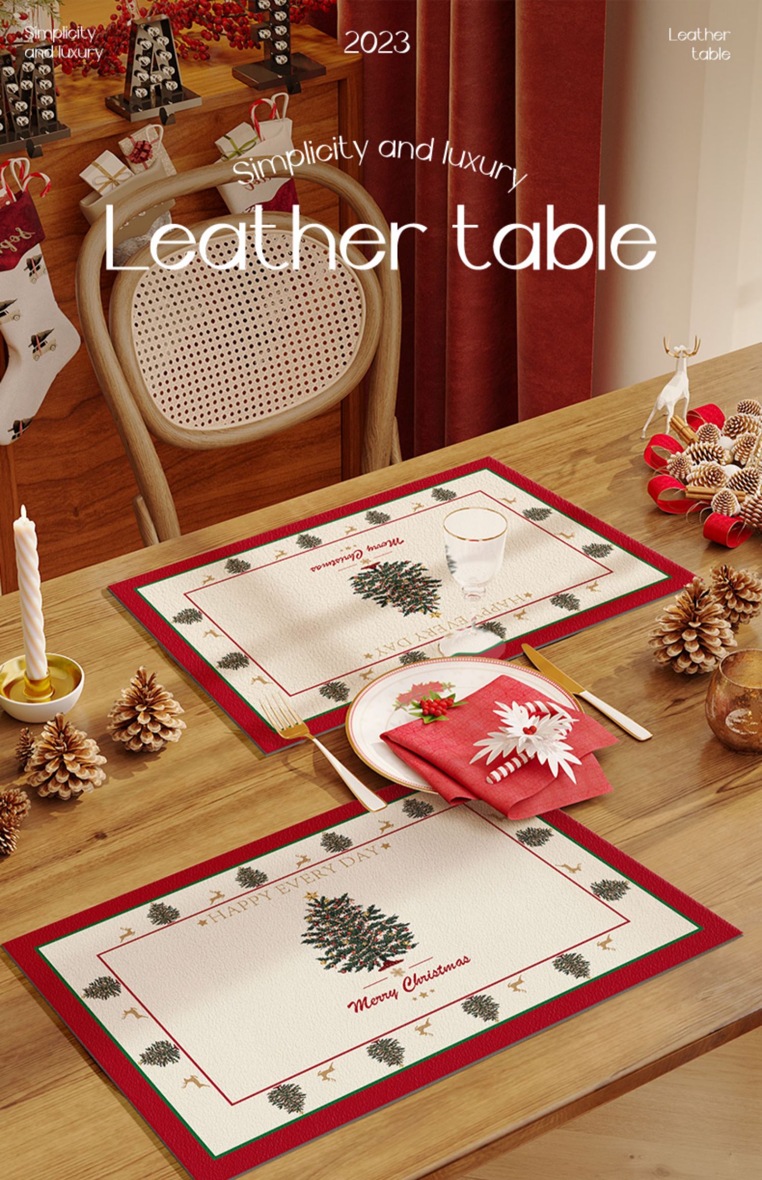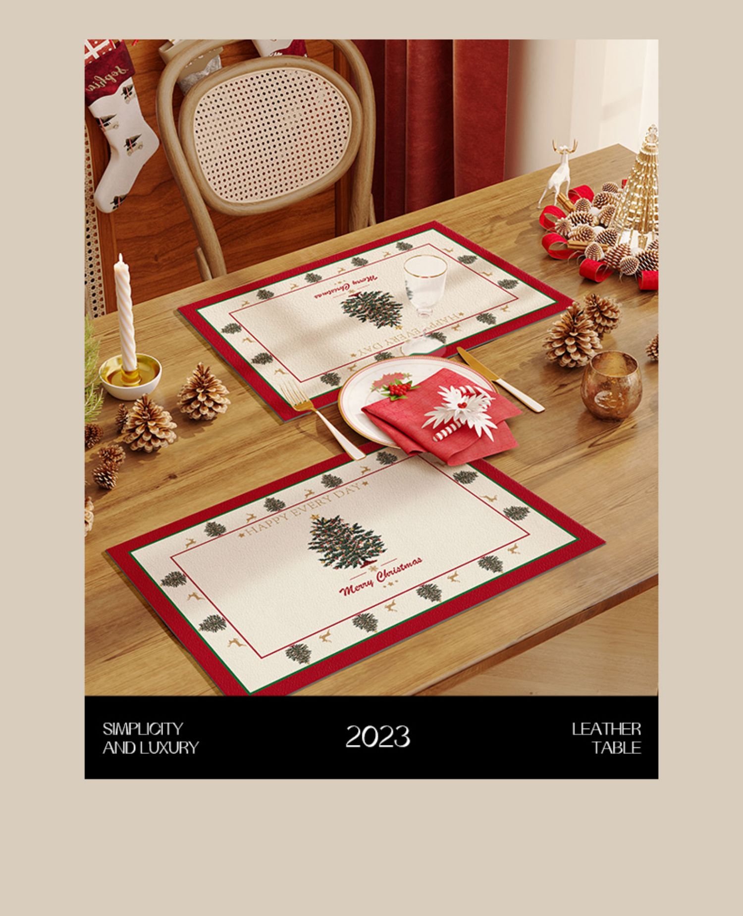 聖誕餐墊防水防油餐桌墊卡通節日氛圍感桌布防燙耐高溫皮革隔熱墊