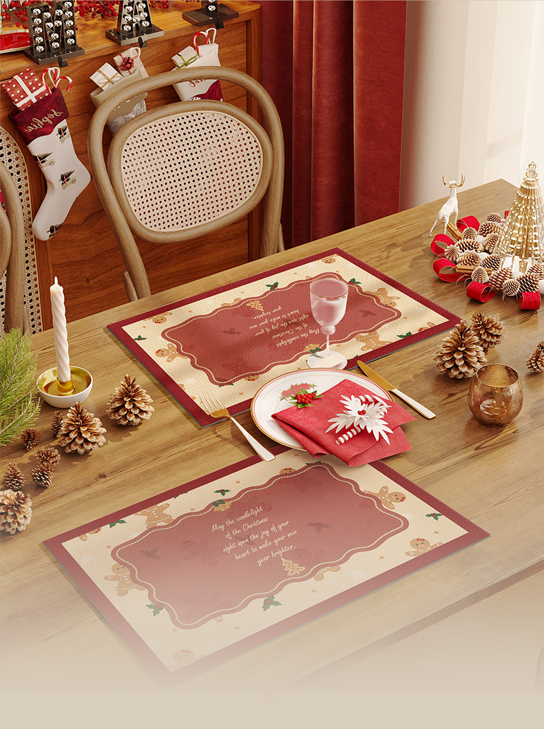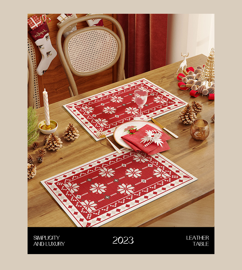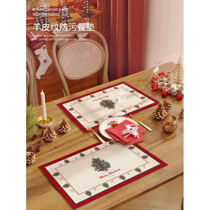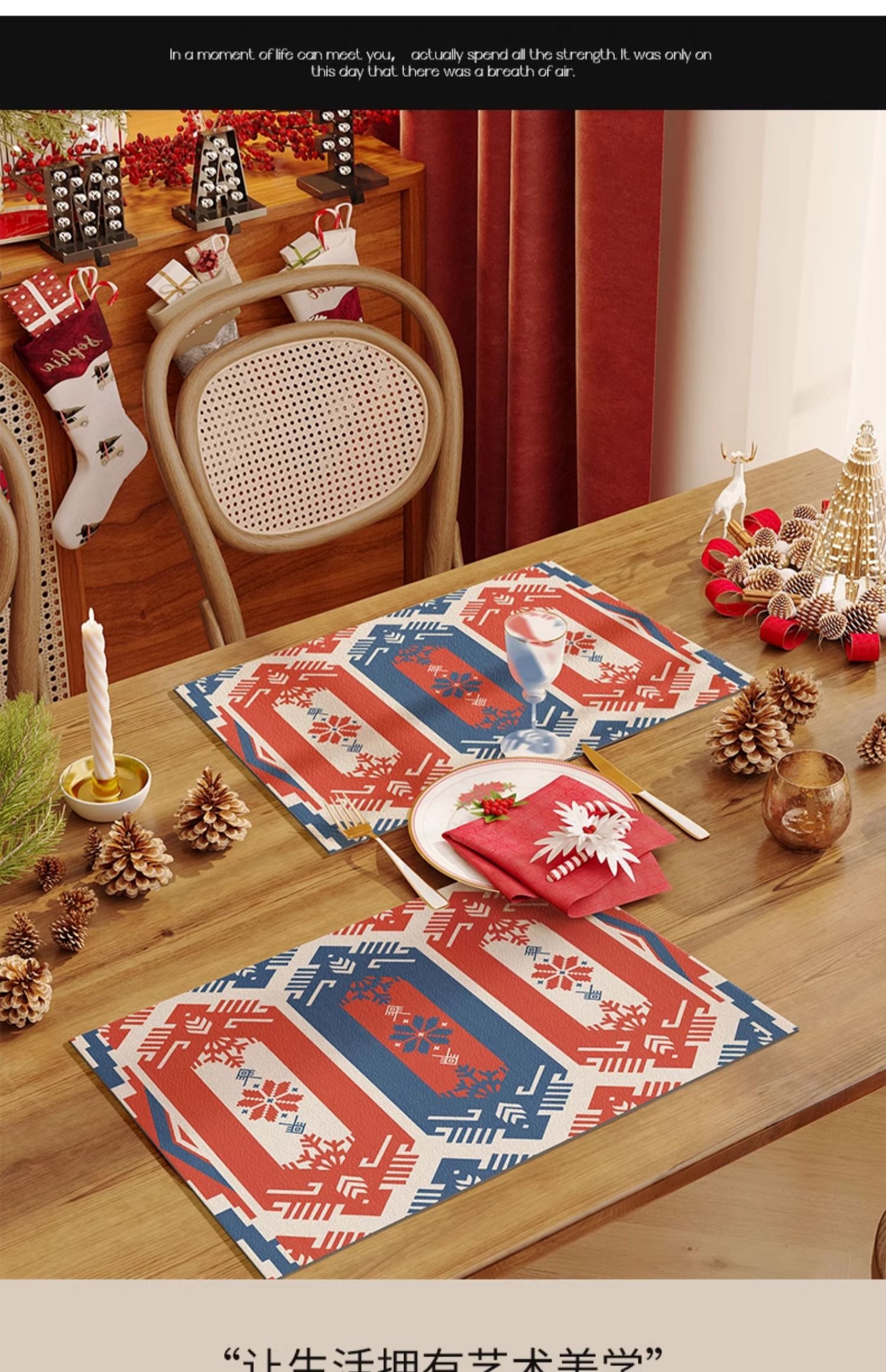 聖誕餐墊防水防油餐桌墊卡通節日氛圍感桌布防燙耐高溫皮革隔熱墊
