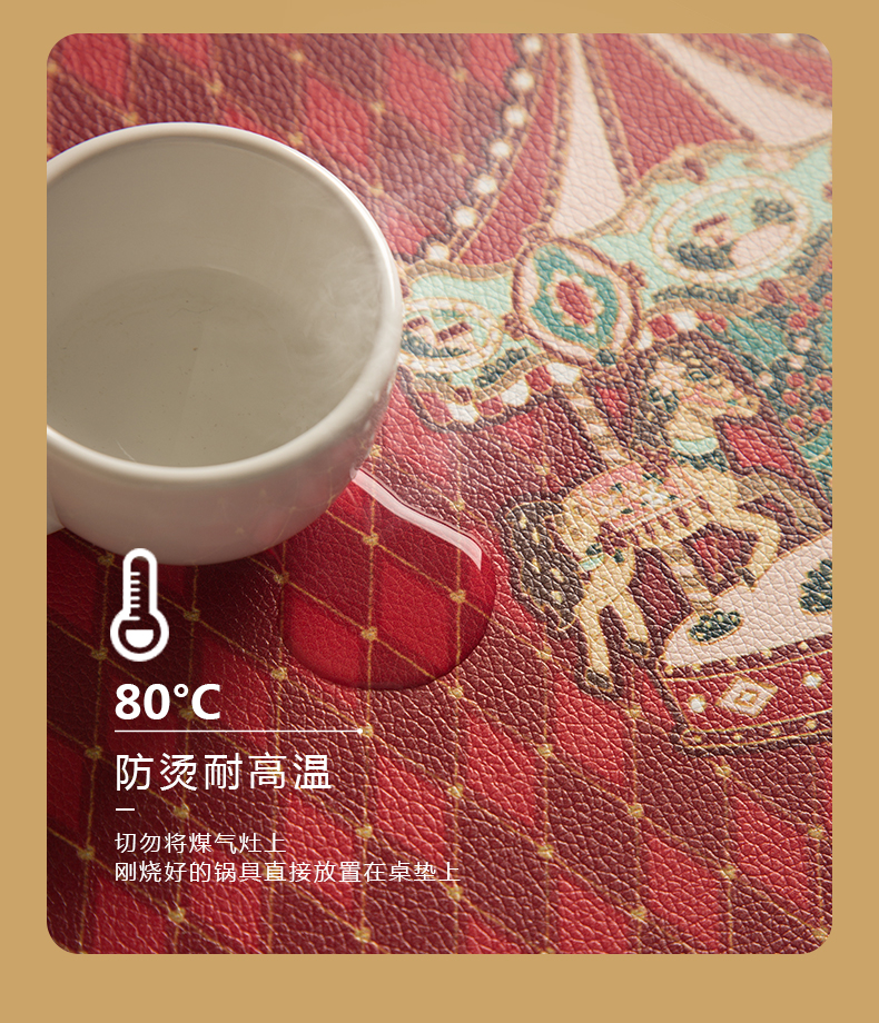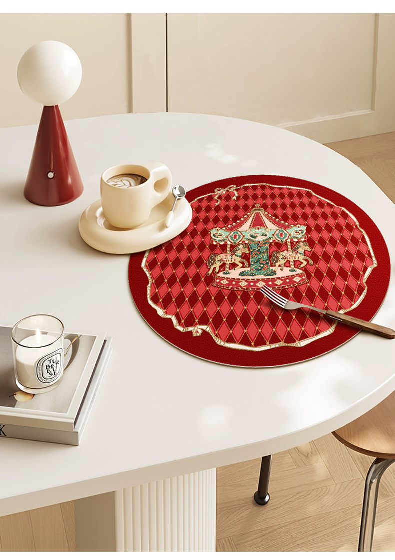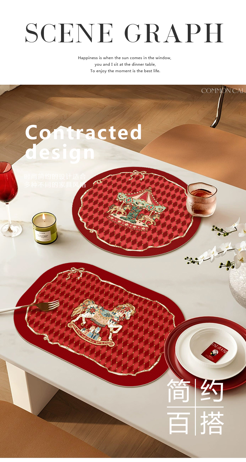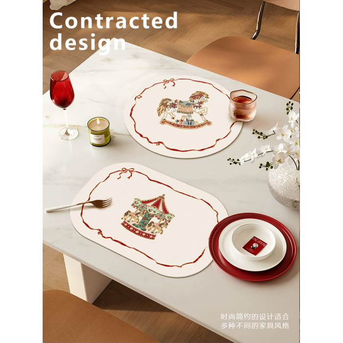 法式復古木馬聖誕新年塞拉斯蒂婭皮革餐桌墊家用碗墊隔熱墊防水墊