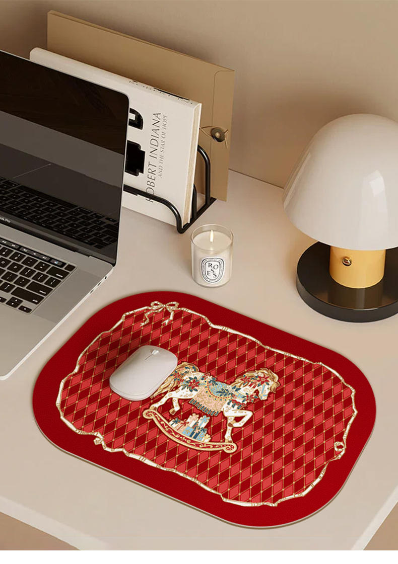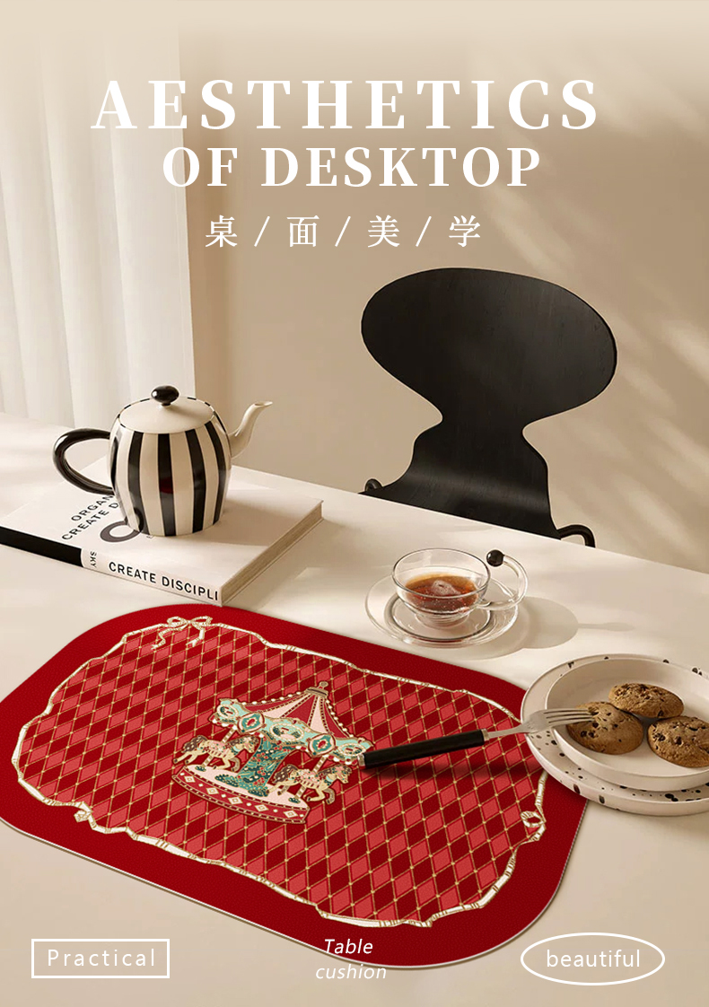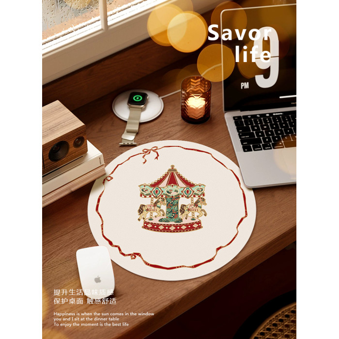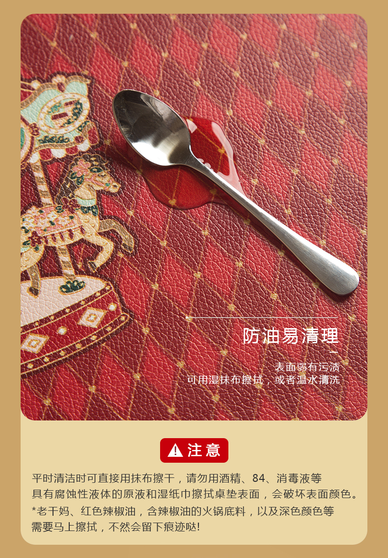 法式復古木馬聖誕新年塞拉斯蒂婭皮革餐桌墊家用碗墊隔熱墊防水墊