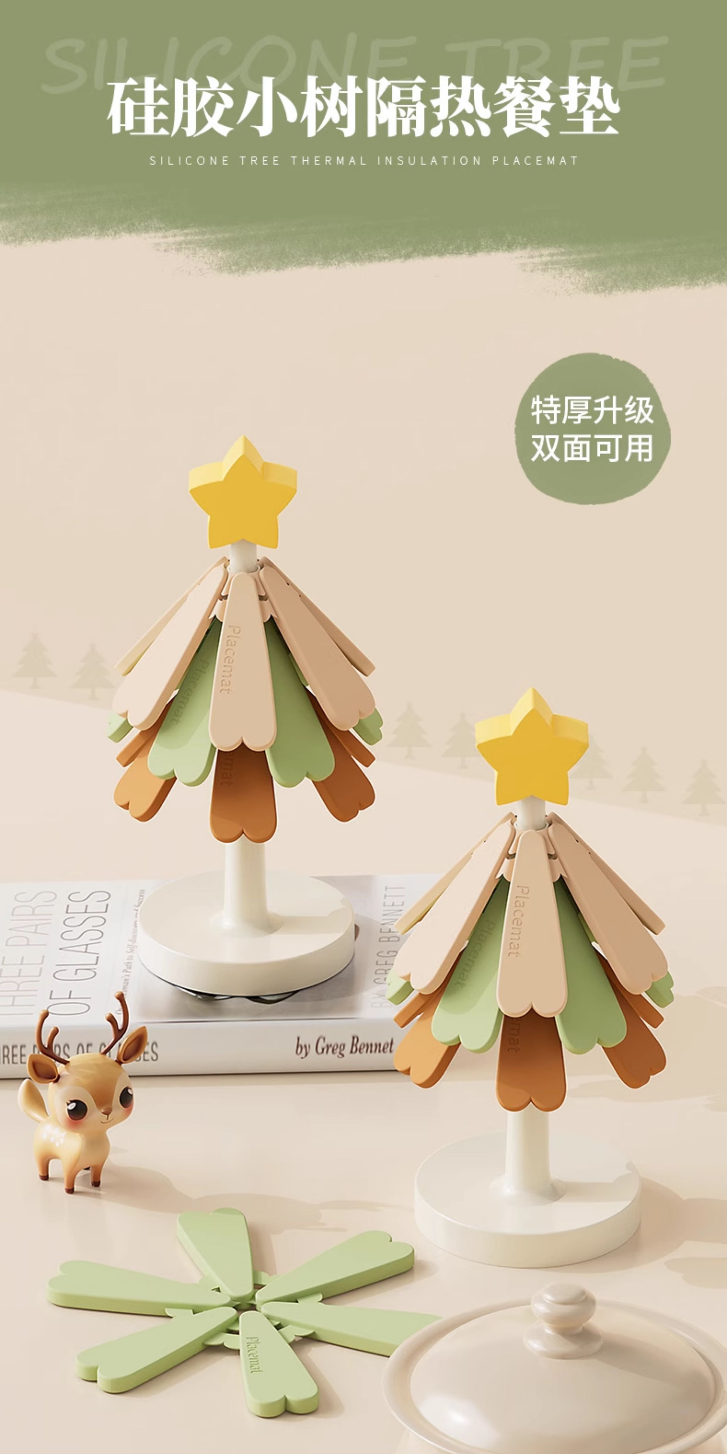 聖誕樹隔熱餐桌墊餐桌矽膠桌墊防燙耐高溫2025新款鍋墊杯墊擺件