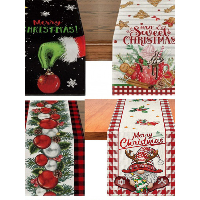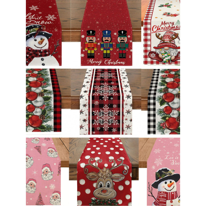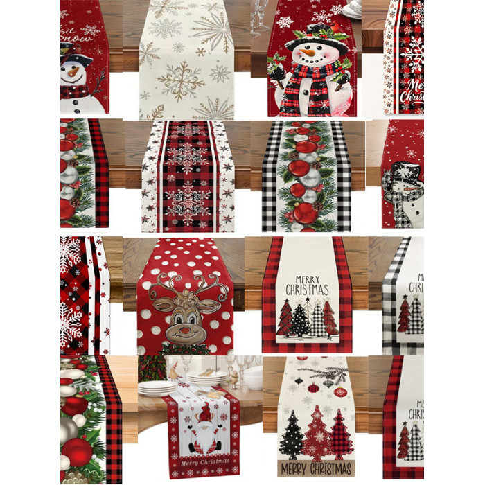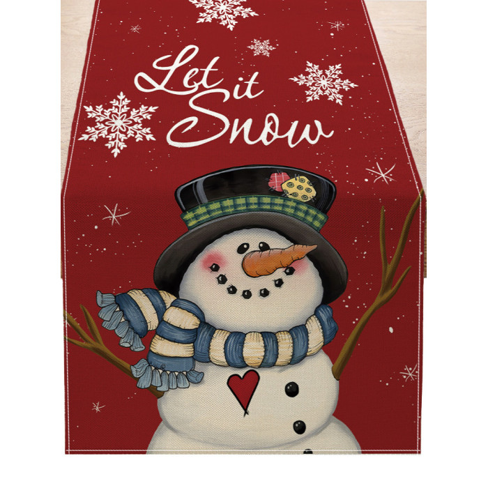 聖誕節雪花雪人印花桌旗酒店餐廳家庭節日派對氛圍裝飾餐桌墊巾