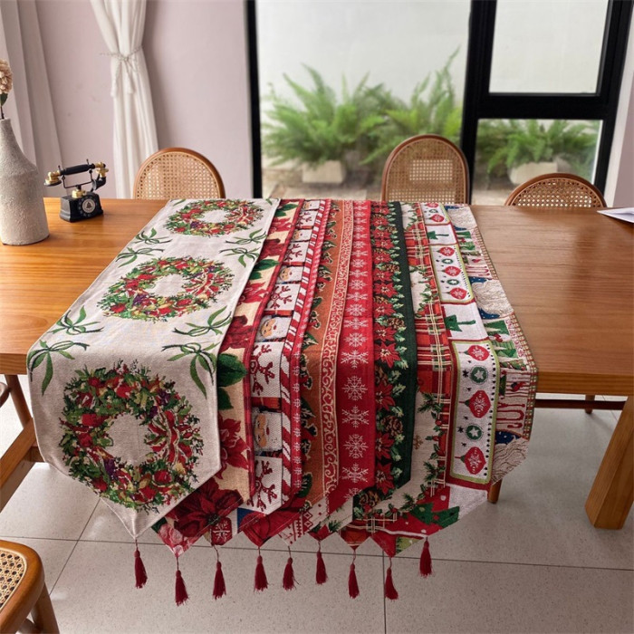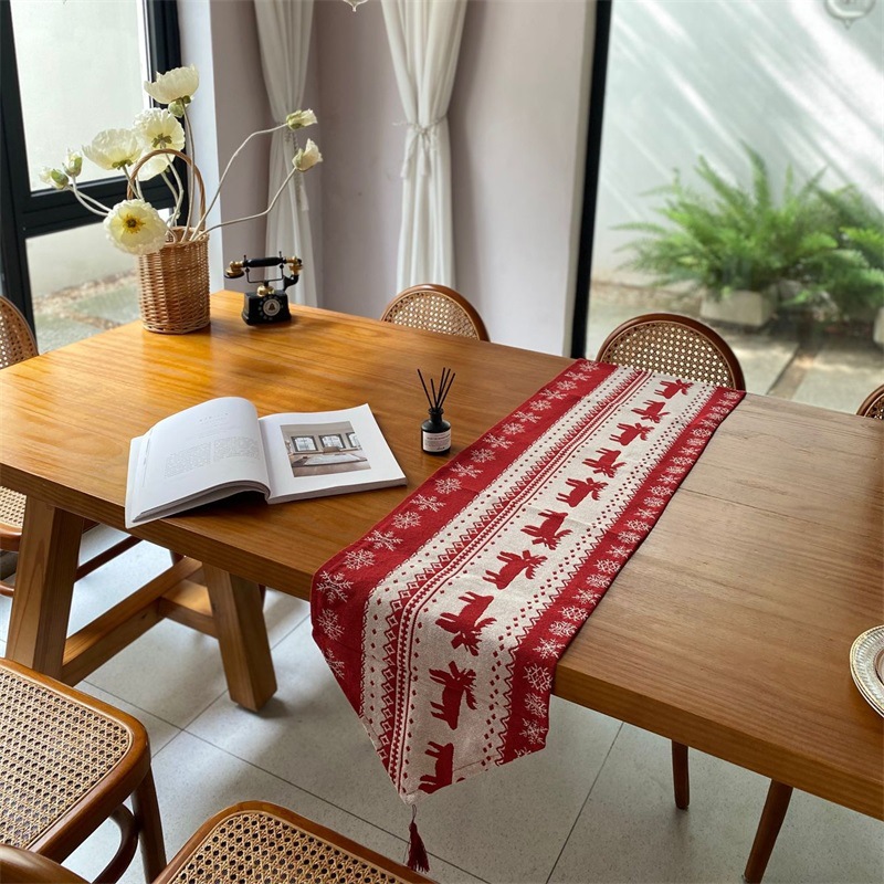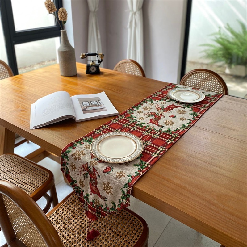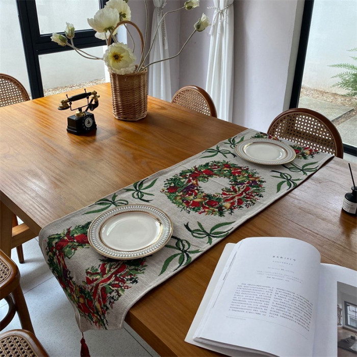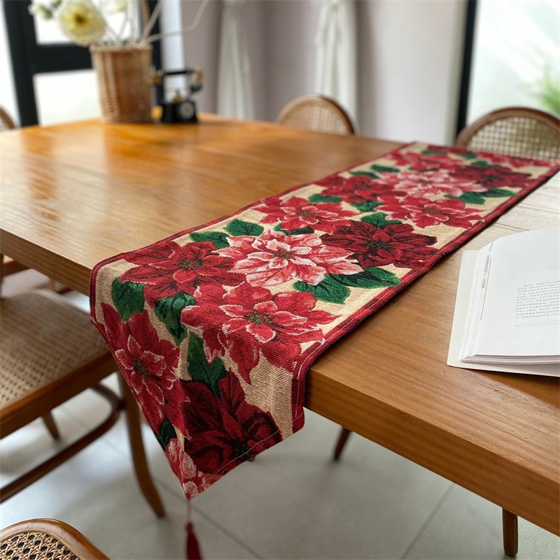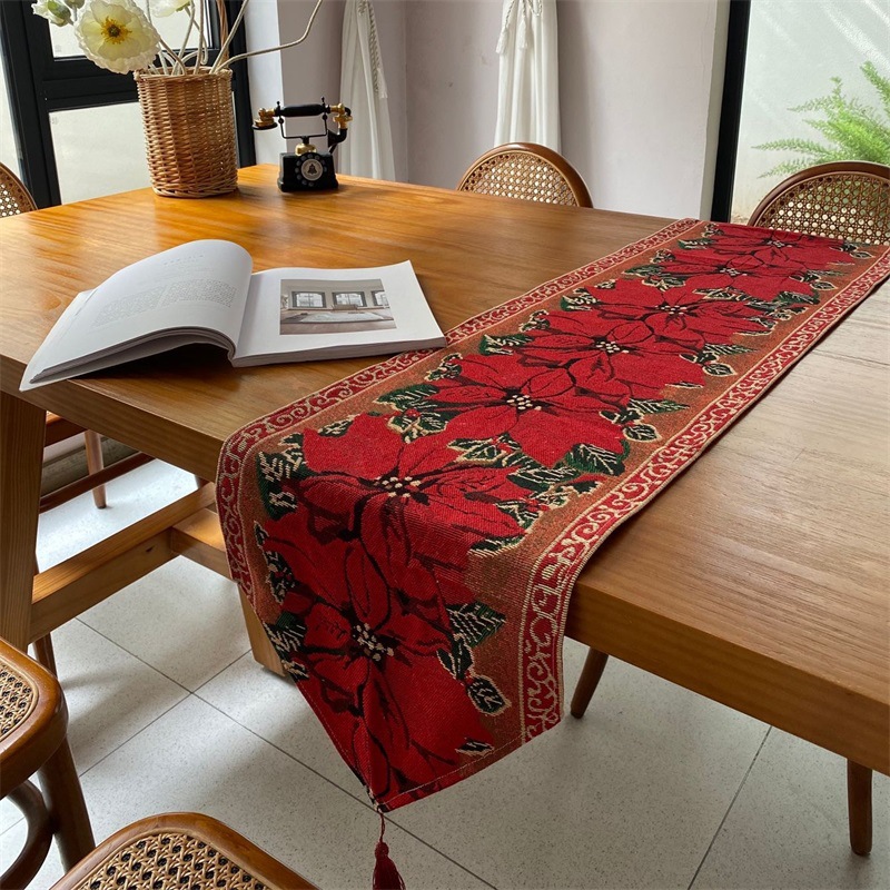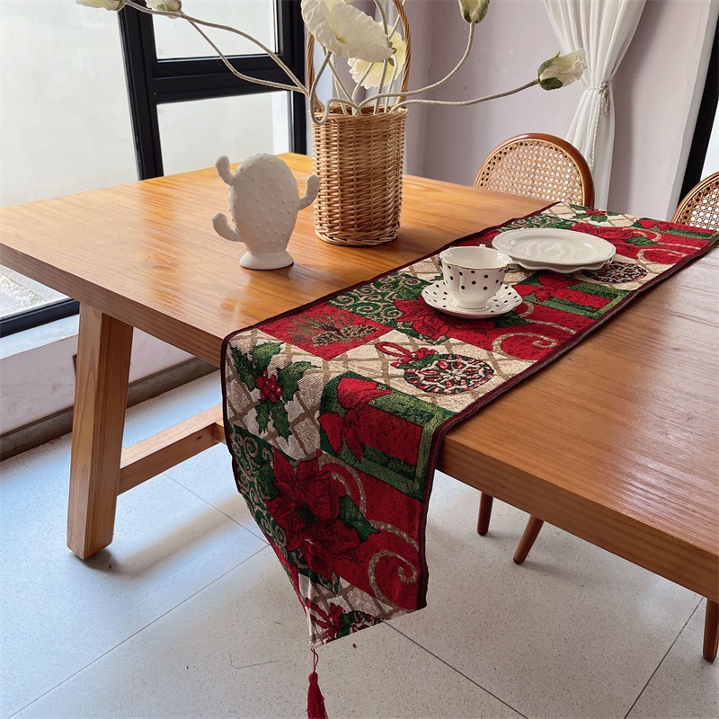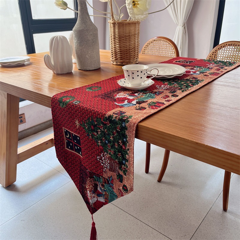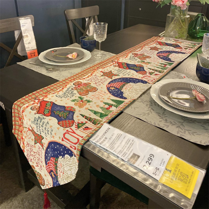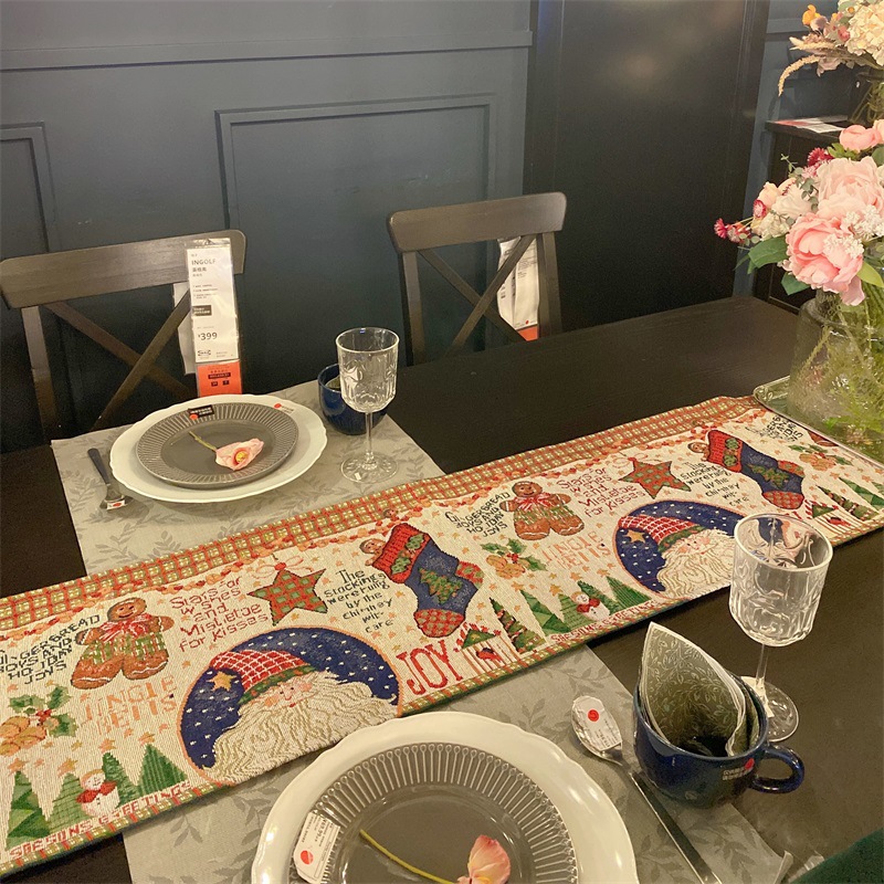 出口歐式美式聖誕節桌旗長條復古高級感節日喜慶茶幾桌旗布