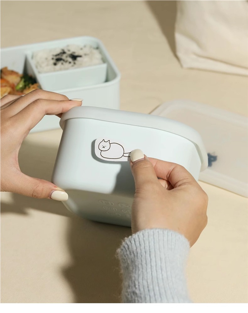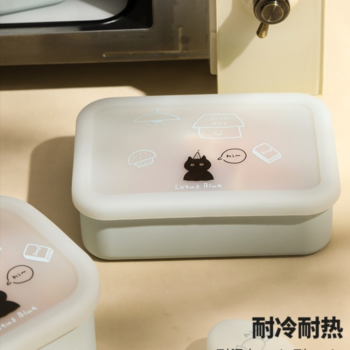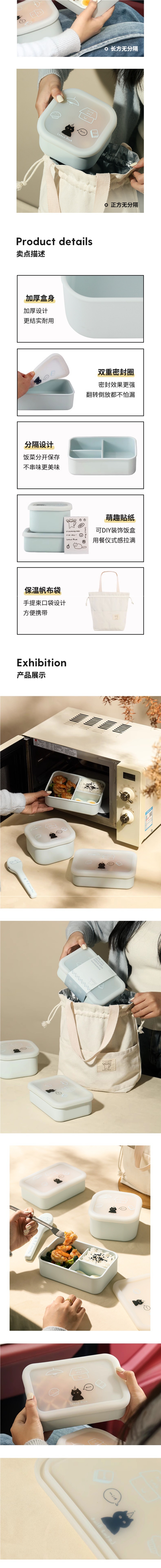 藍蓮花微波爐可加熱分格矽膠飯盒便當食品級三格上班族輕便小容s^