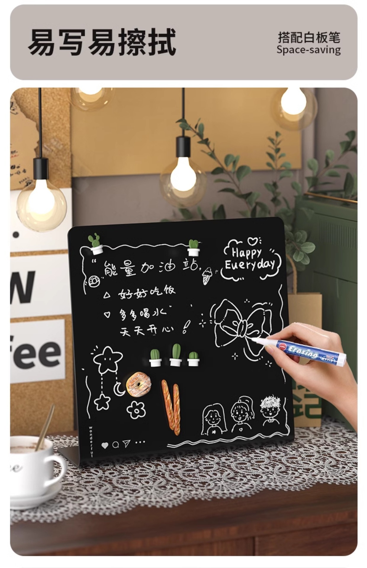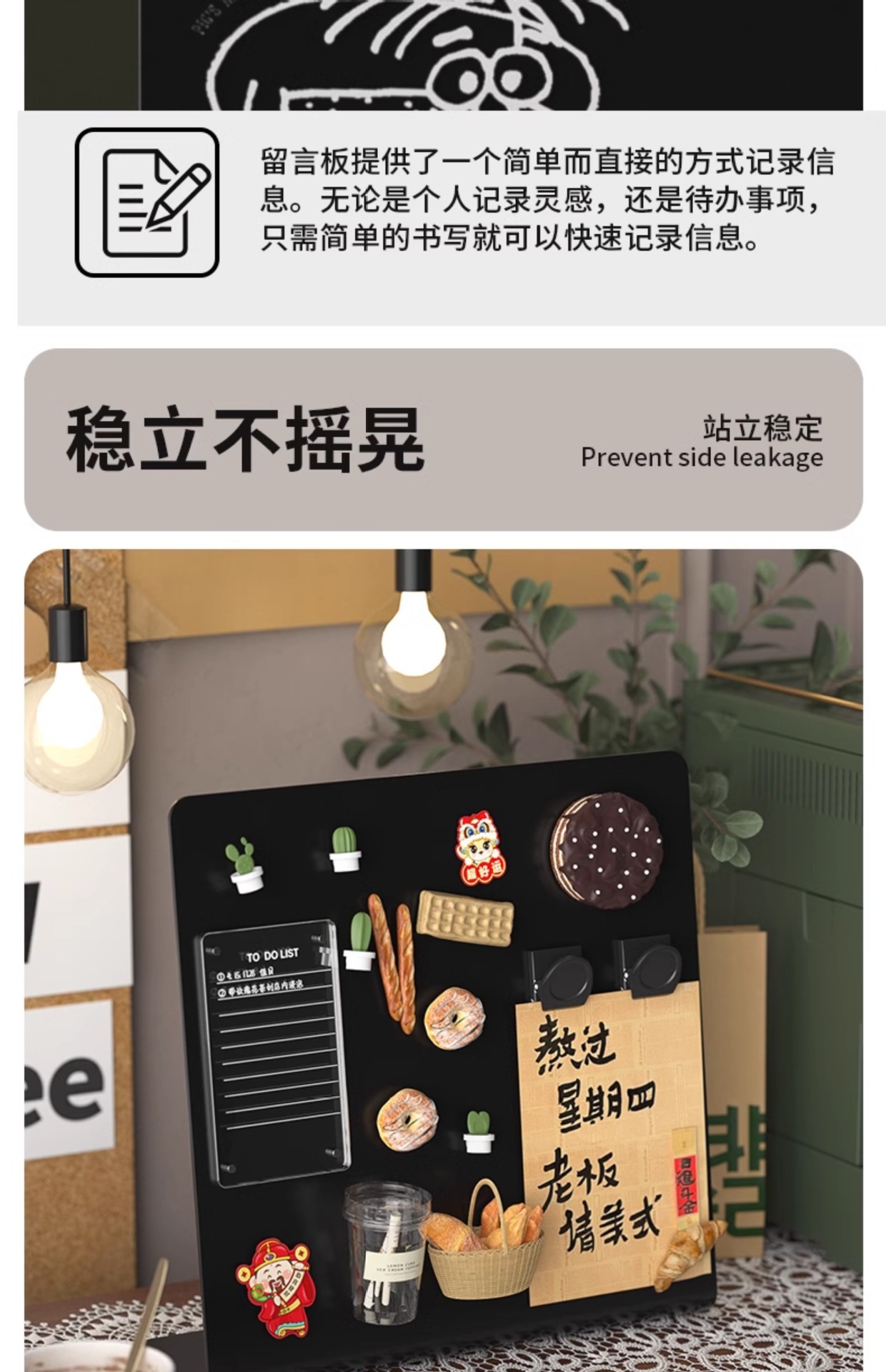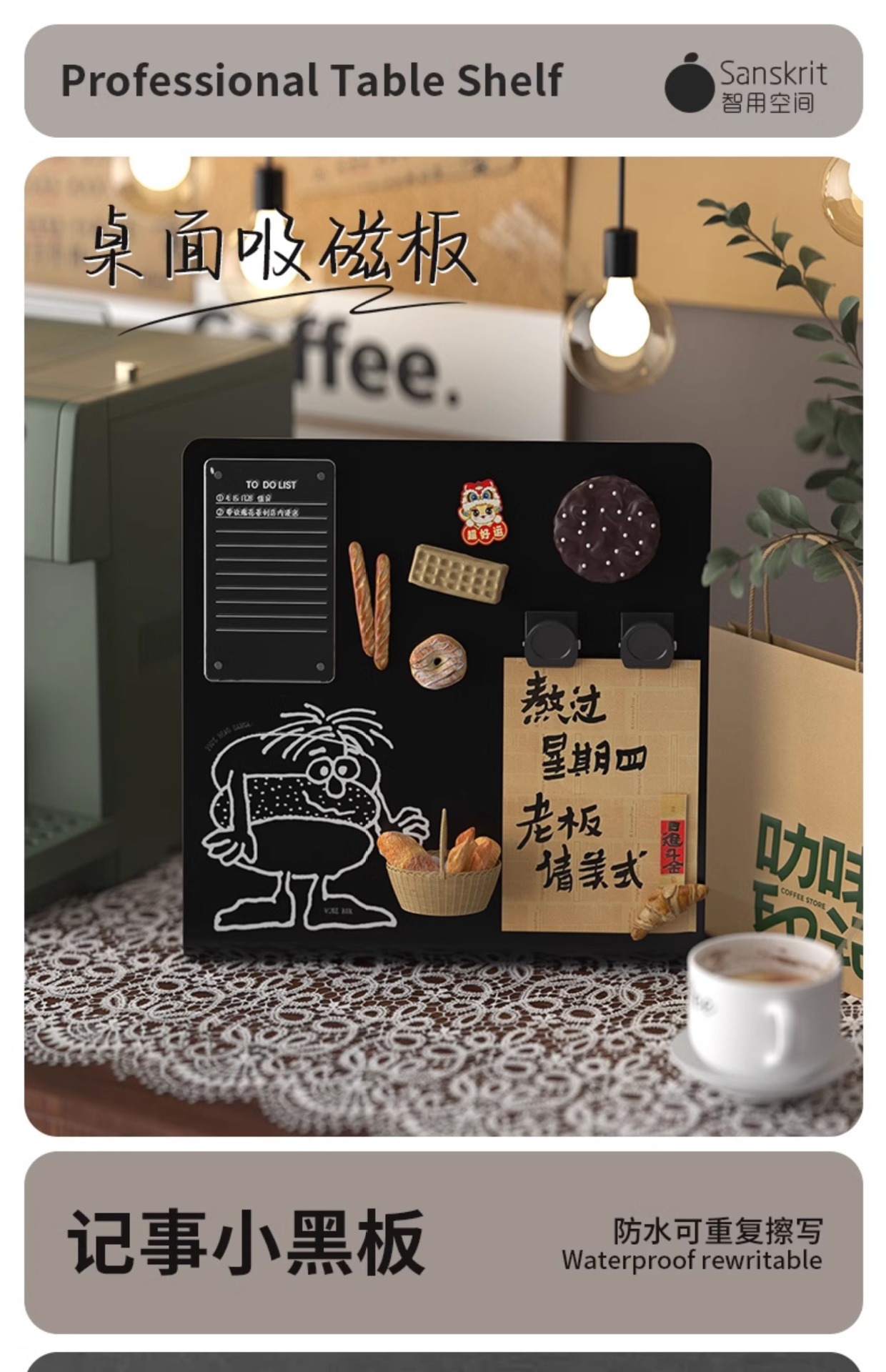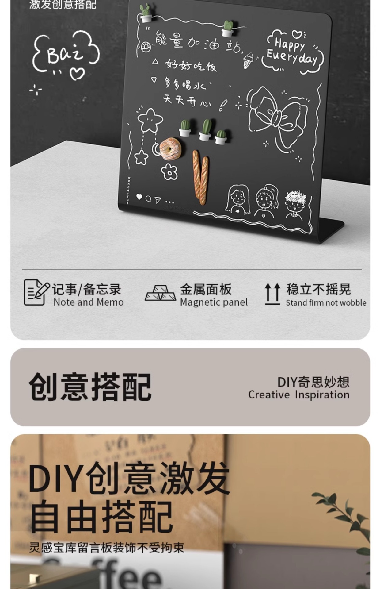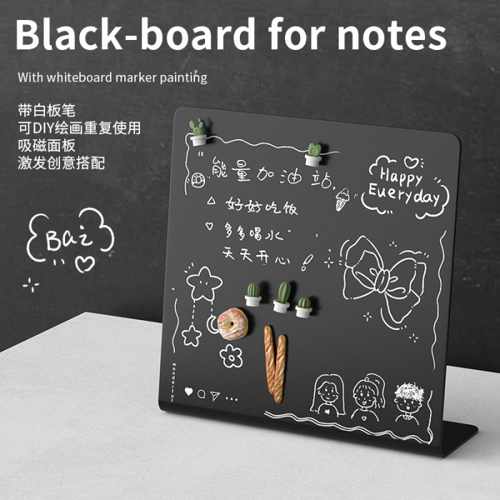 桌上型磁吸畱言板小黑板記事板金屬板免安裝可擦寫展示板磁吸黑板辦