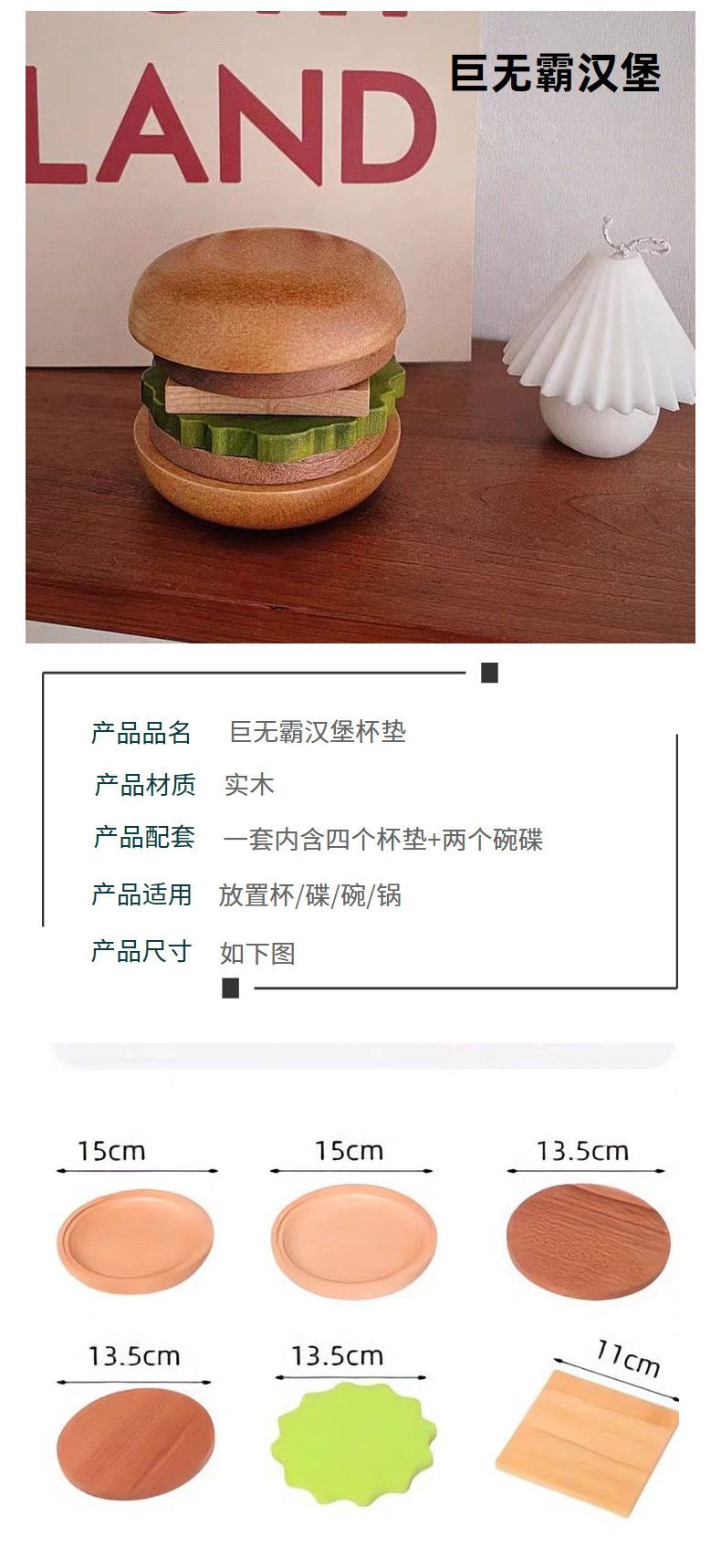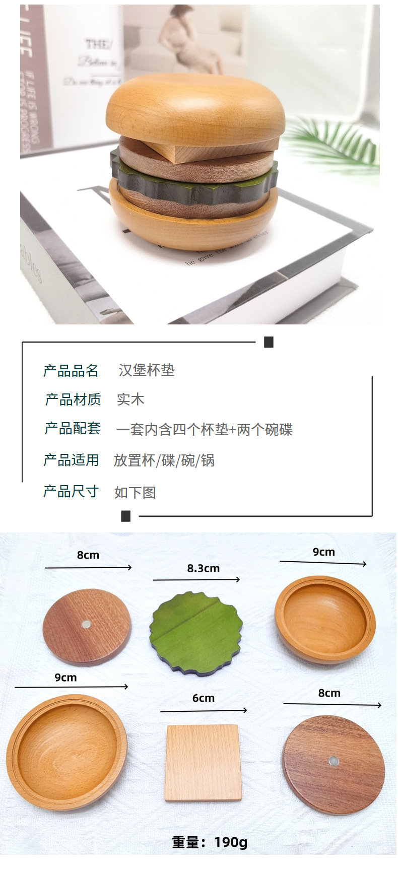 可愛創意磁吸杯墊漢堡包桌面多功能隔熱墊家用餐廚餐具