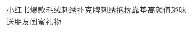 小紅書同款毛絨刺繡撲克牌抱枕靠墊枕頭高顔值趣味送朋友閨蜜禮物