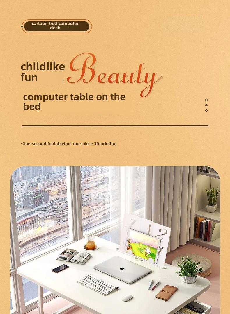 多功能可折曡床上小桌板 宿捨卡通學習電腦桌 家用簡約懶人辦公桌